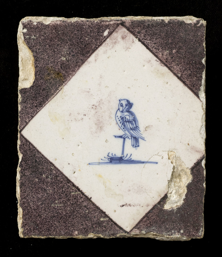 Tegel in tinglazuur, voorstellende vogel ca. 1700-1750