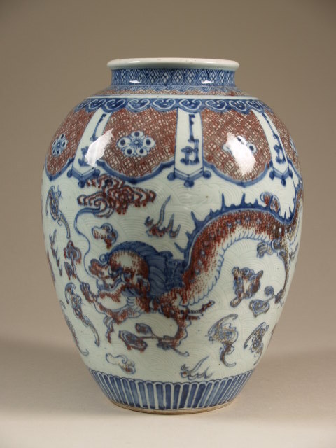 Pot met decor van draken, vleermuizen en ingegrifte ...