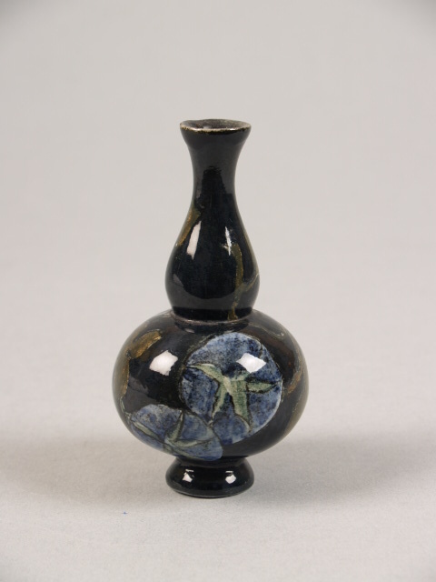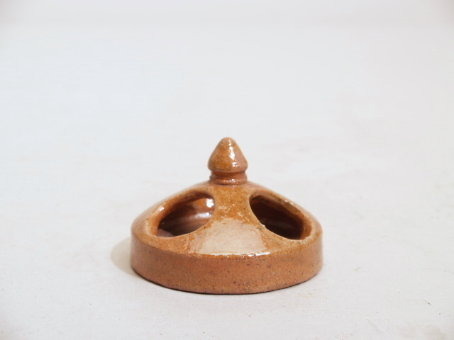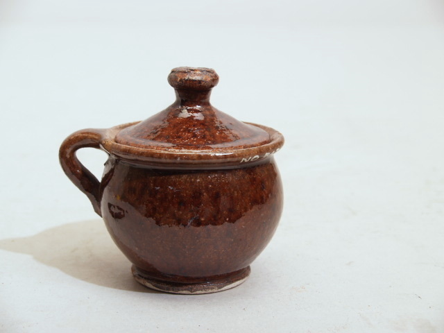 Model van een pot met deksel, donkerbruin