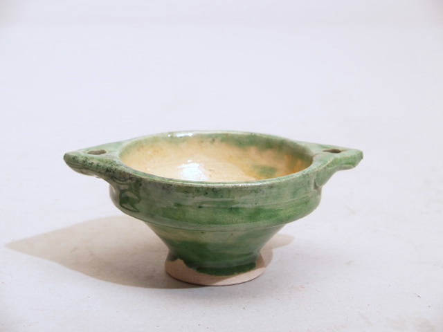 Model van een waskom, bruinrood en geel