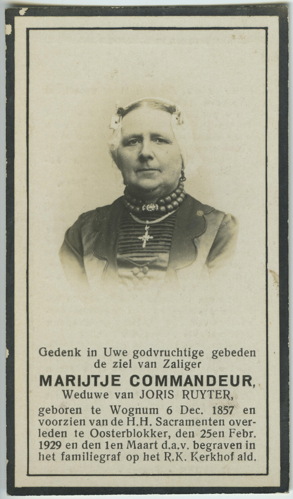 Bidprentje van Marijtje Commandeur, 1929 (bidprentje)