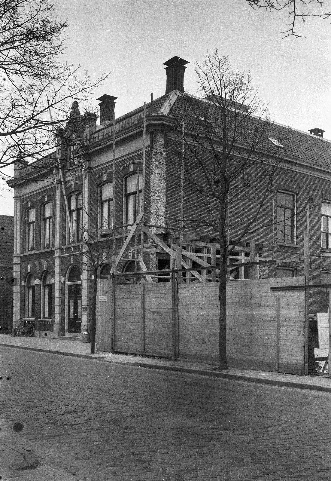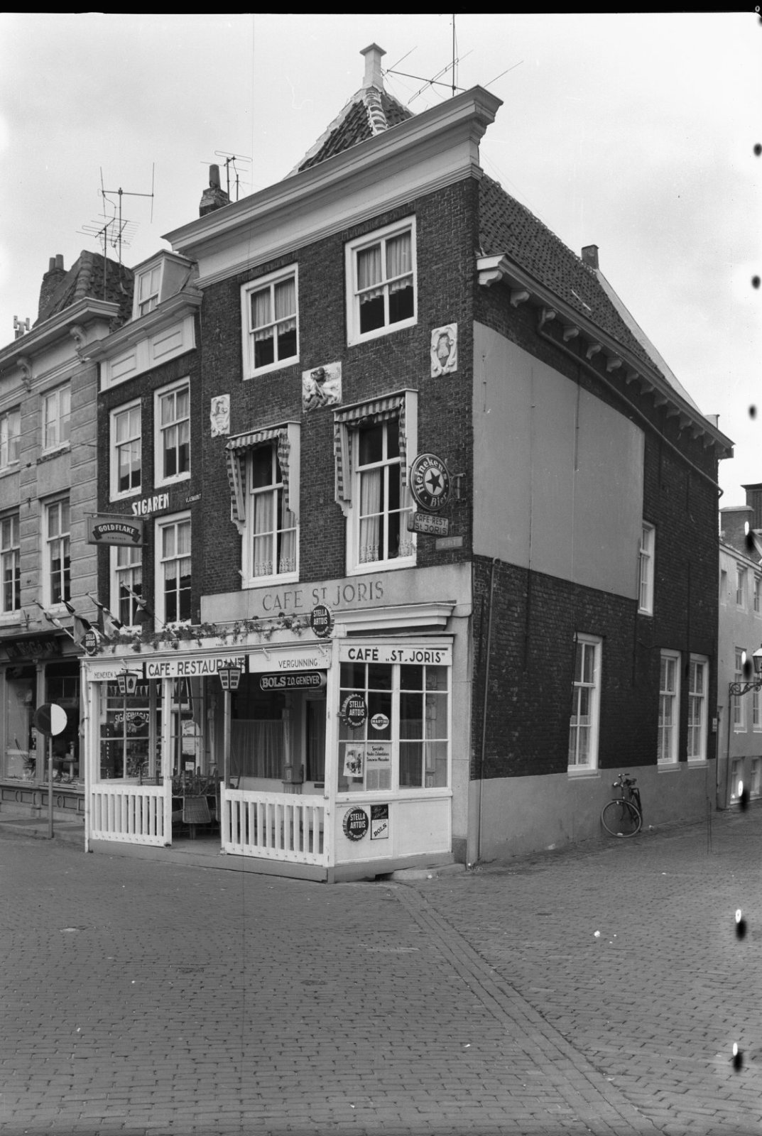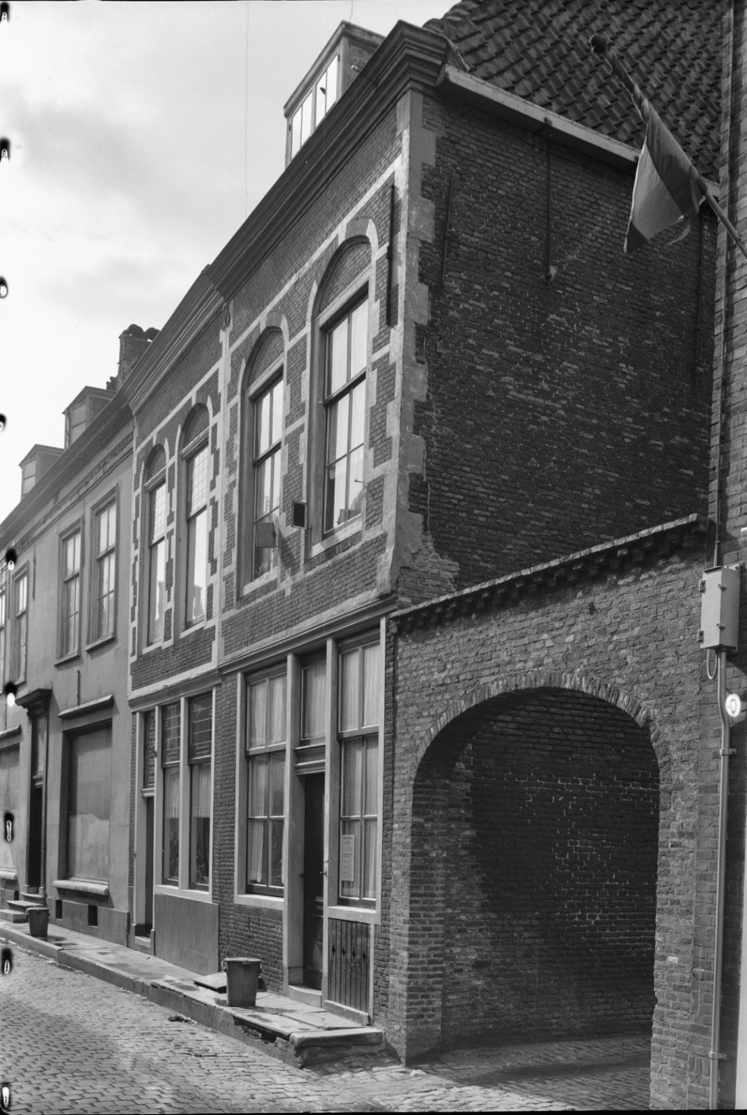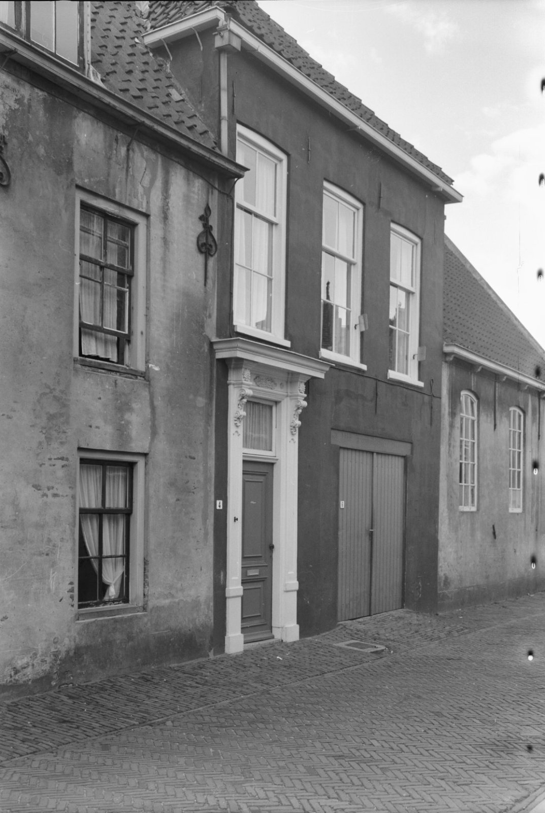 Voorgevel en zijgevel van witgepleisterd pand met ve...