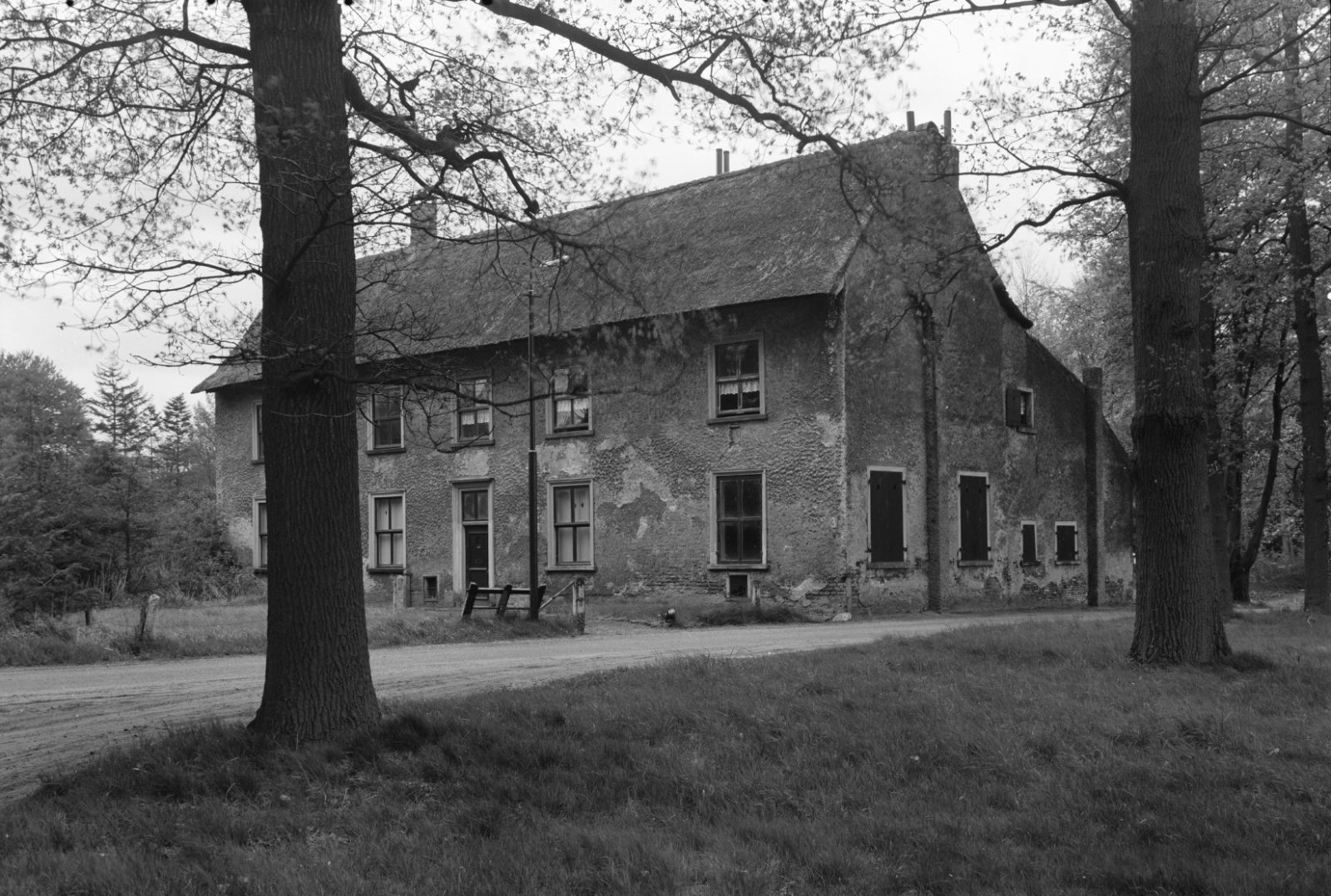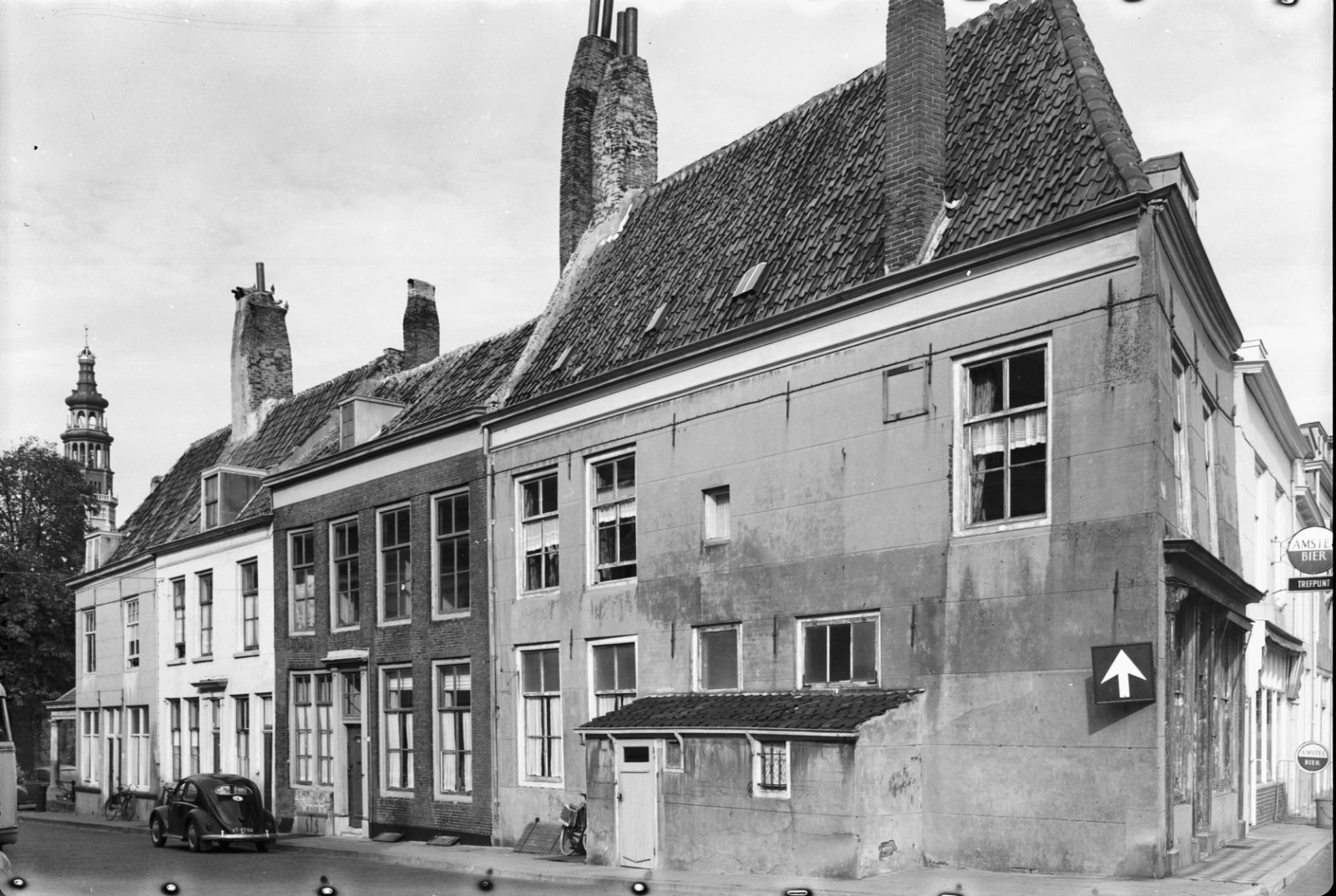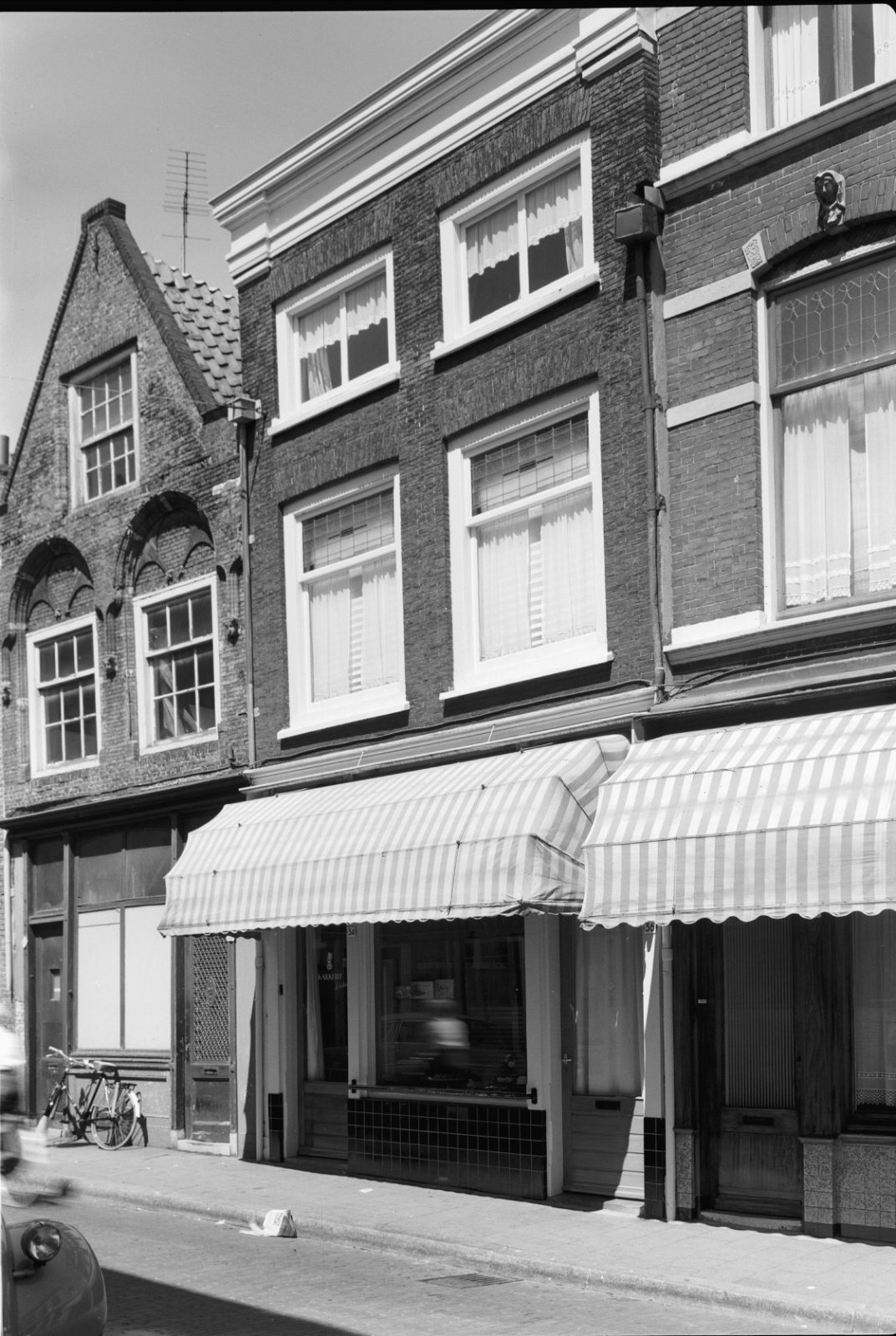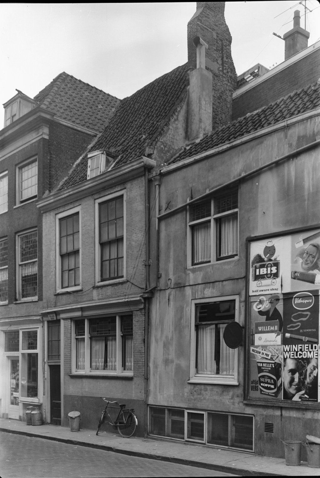 Voorgevel en zijgevel van witgepleisterd pand met ve...
