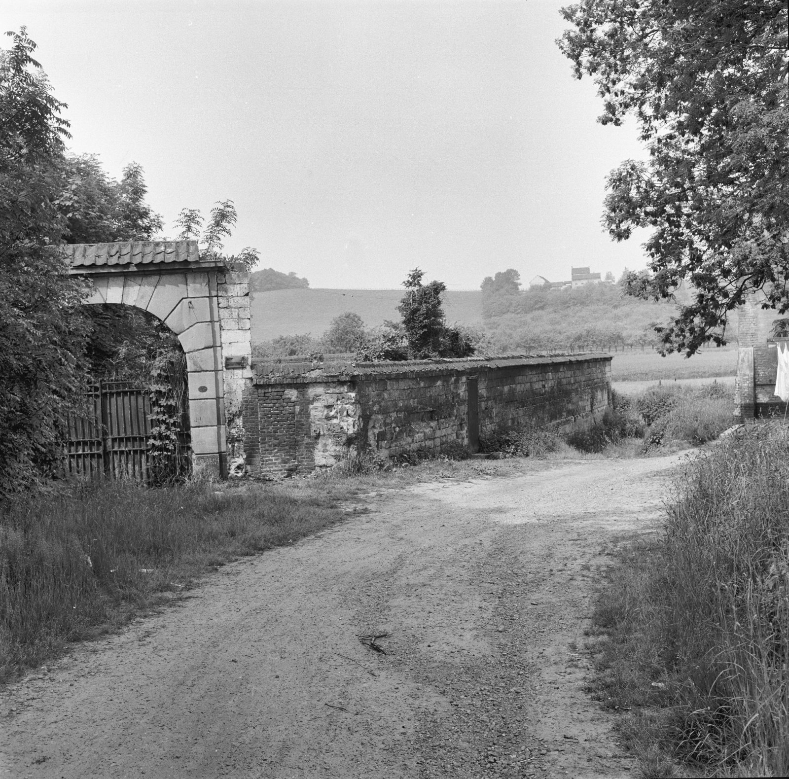 Natuurstenen muur met poort bij watermolen van Nekum