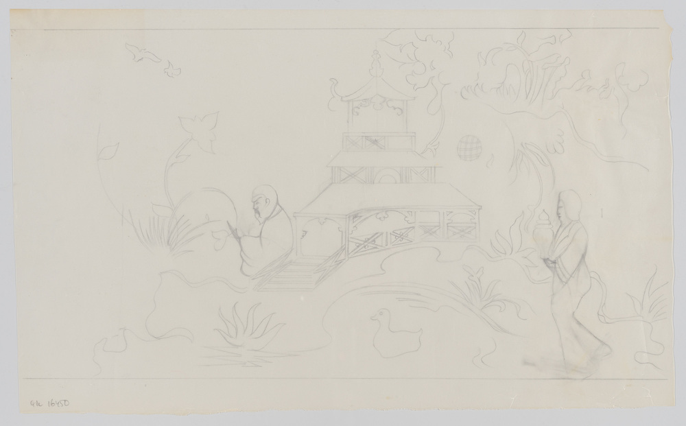 Schets van de chinoiserie uit het rode Chinese kabin...