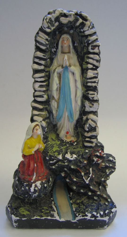 Beeld van gips voorstellend Maria in de grot te Lour...