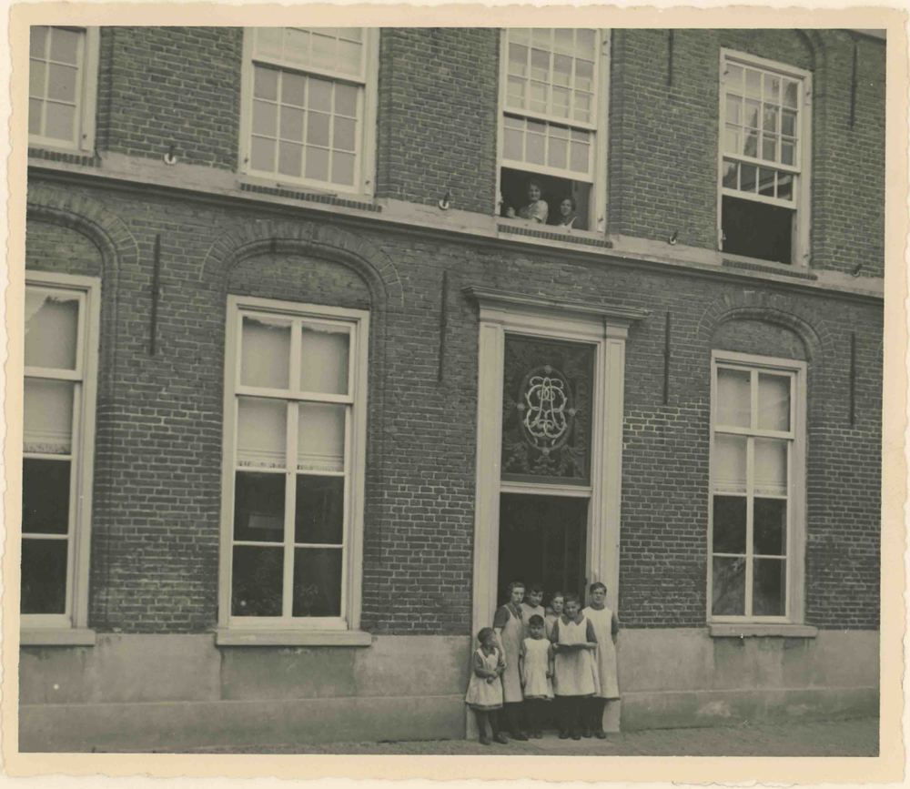 Zwart-wit foto van de leerlingen van naaischool numm...