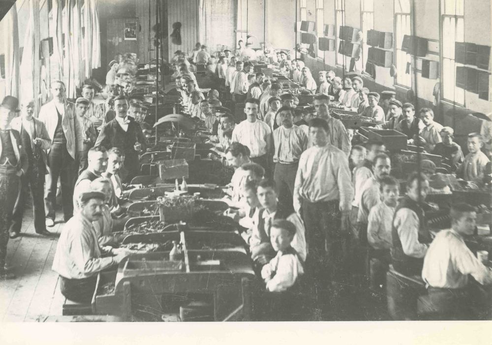 Foto, voorstellende sigarenfabriek "Trio" te Culembo...