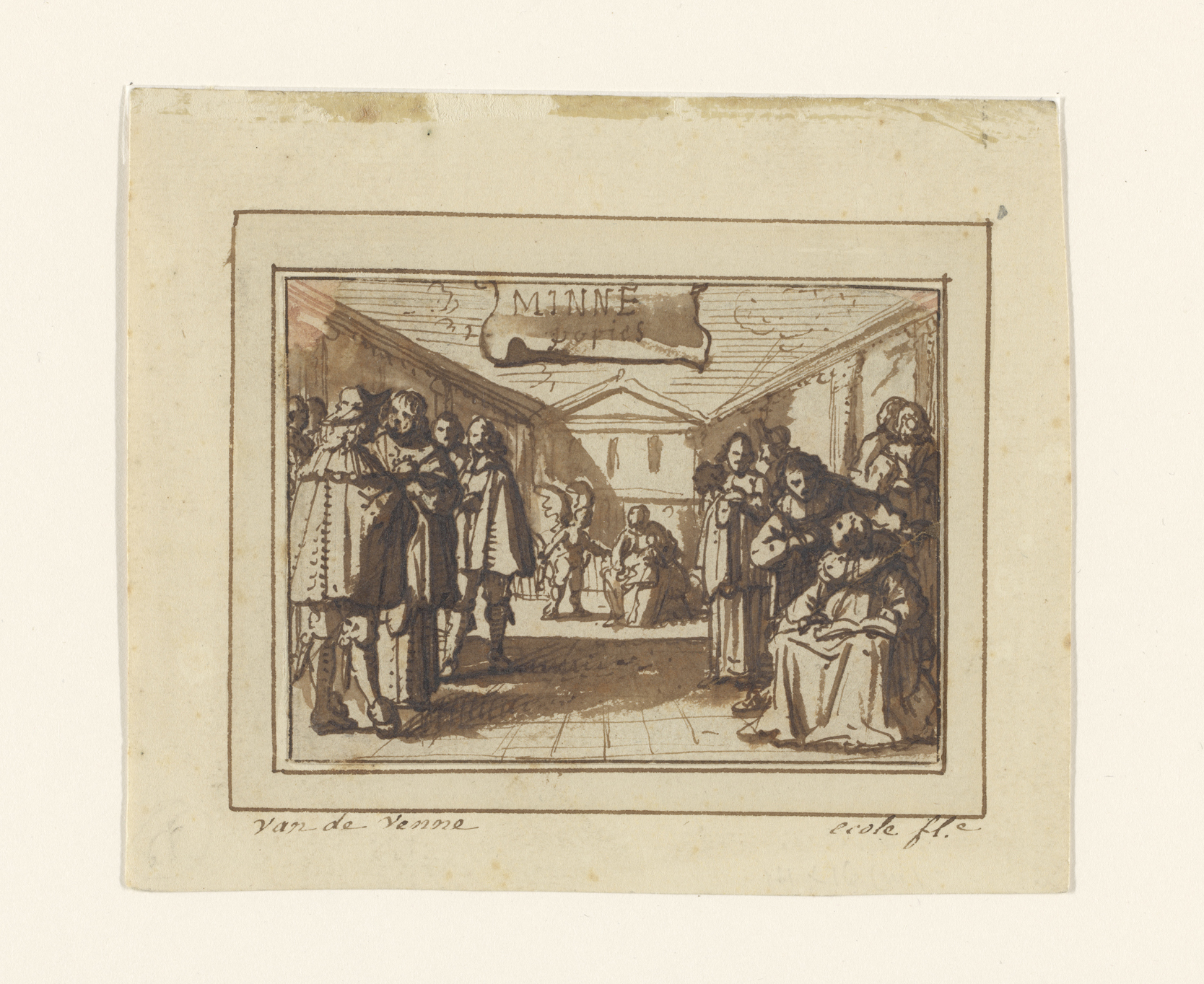 Ontwerp voor de titelprent van een boek met minnelie...