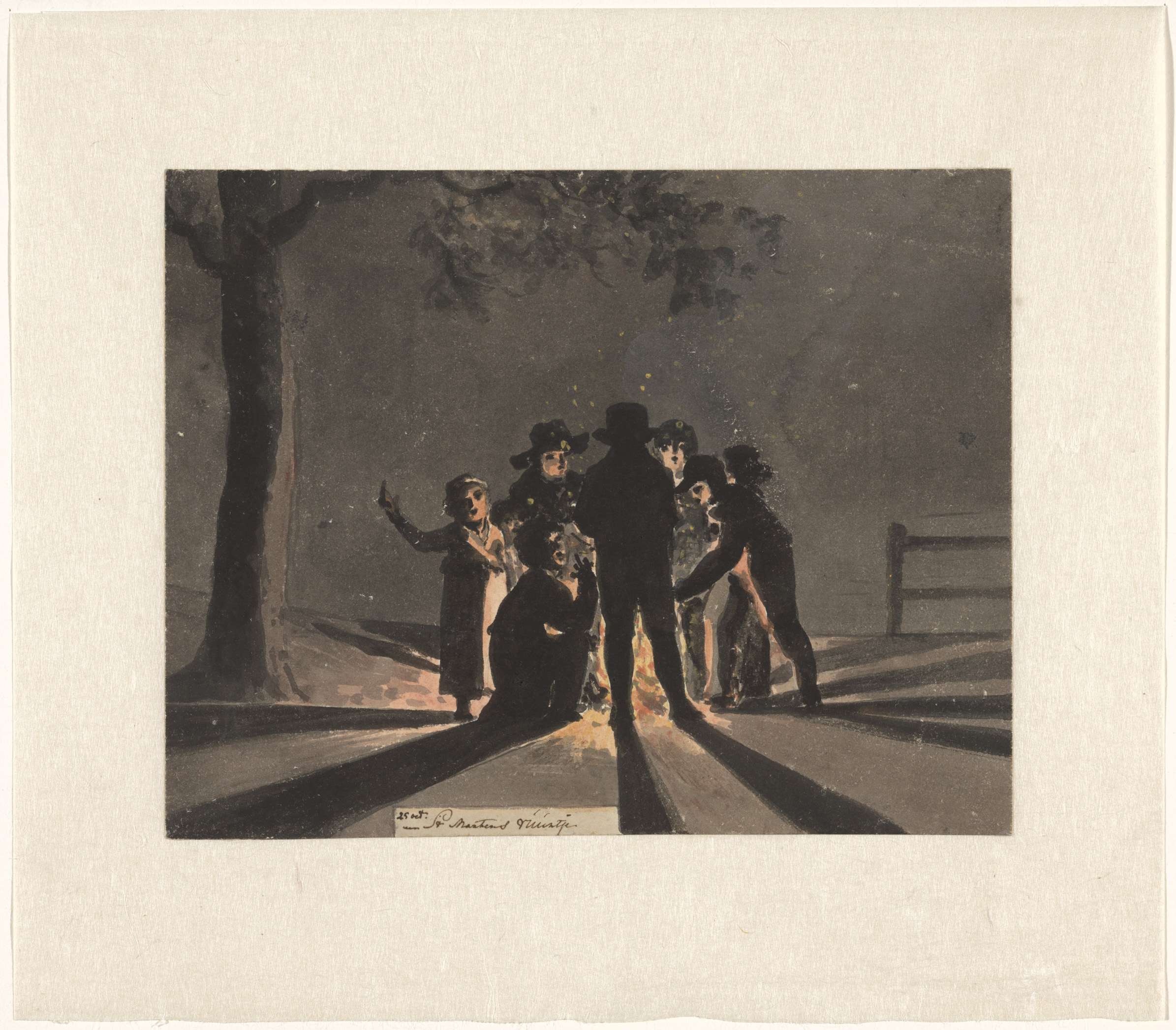 Children clustered around a Saint Martin’s bonfire