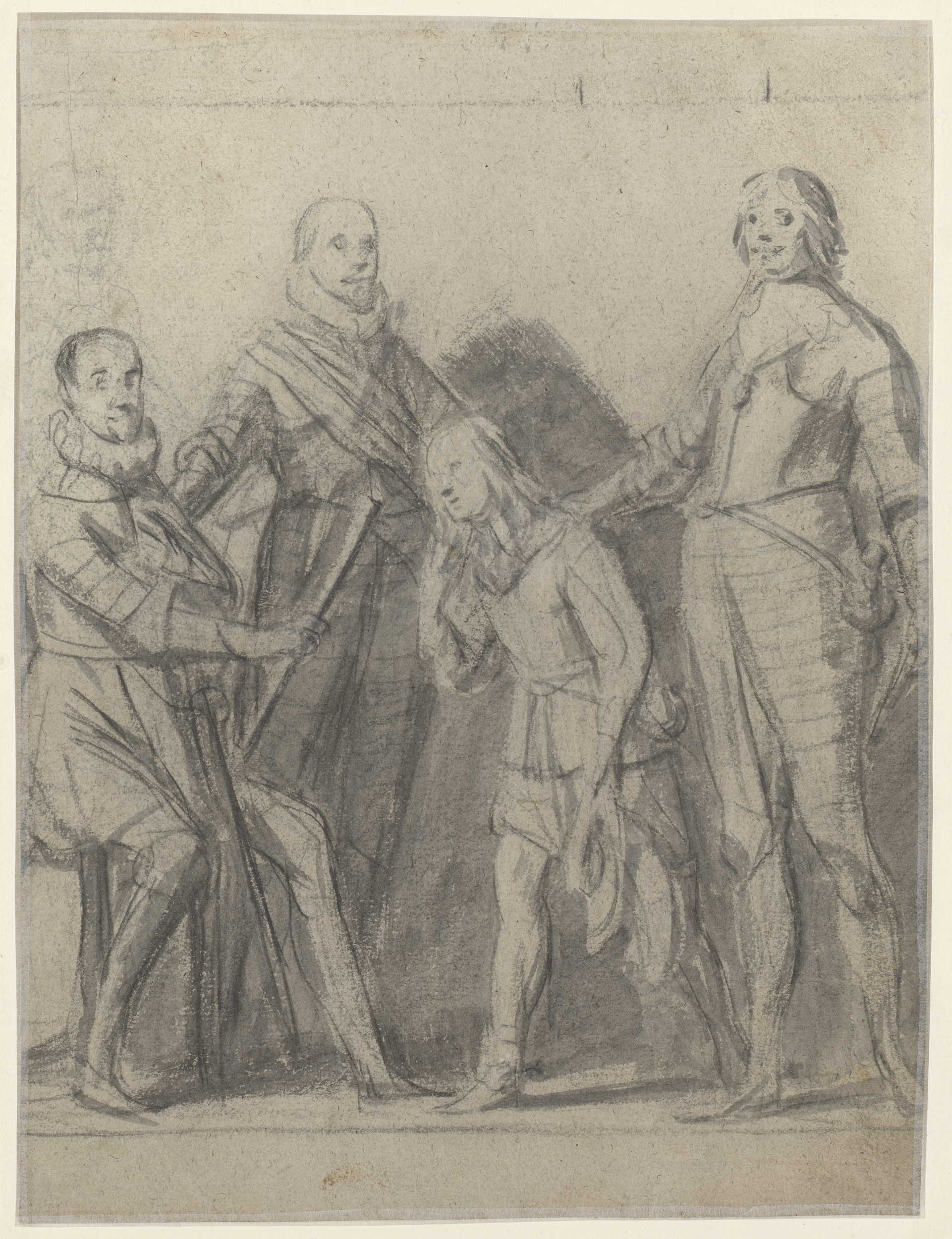 Groepsportret met drie mannen en een jongen