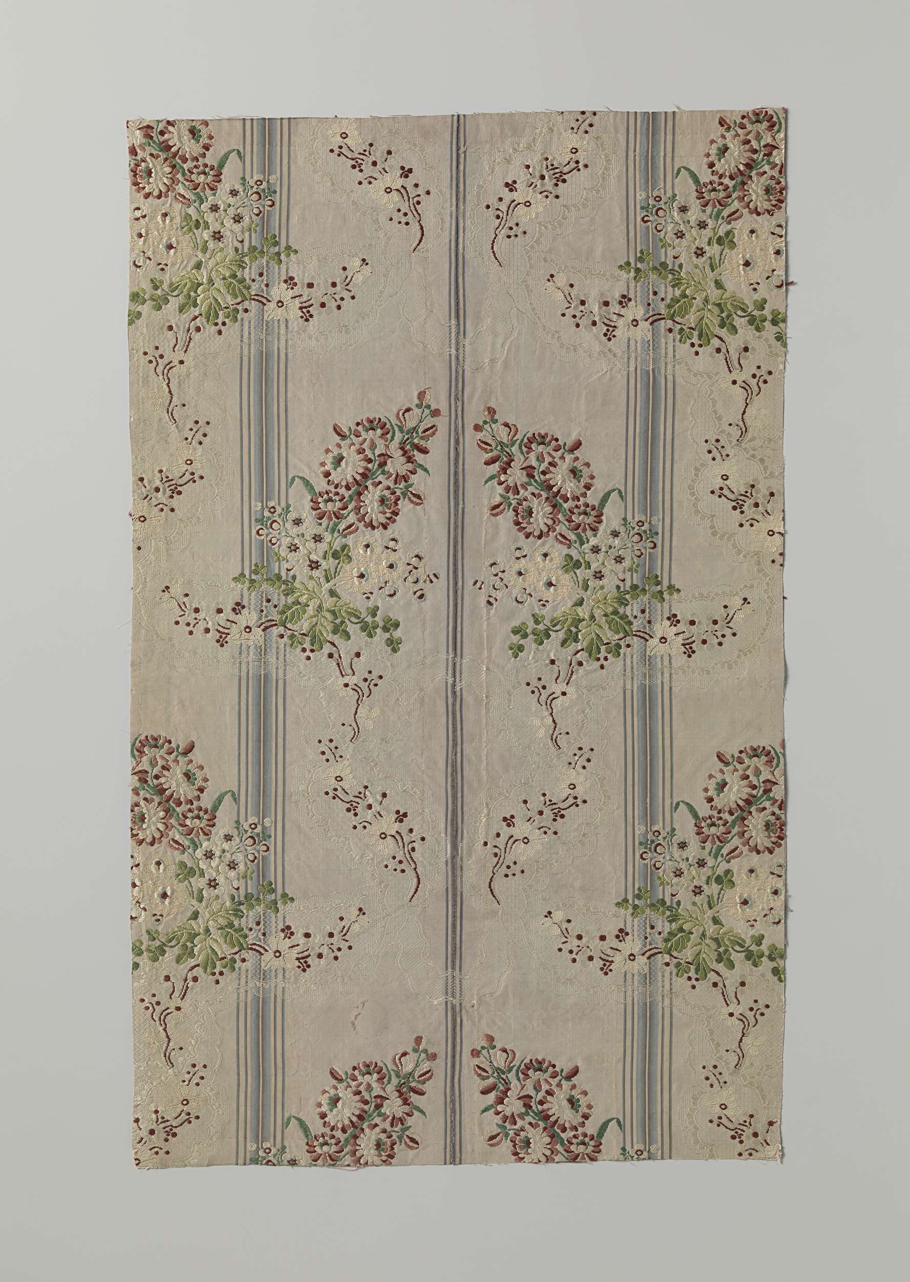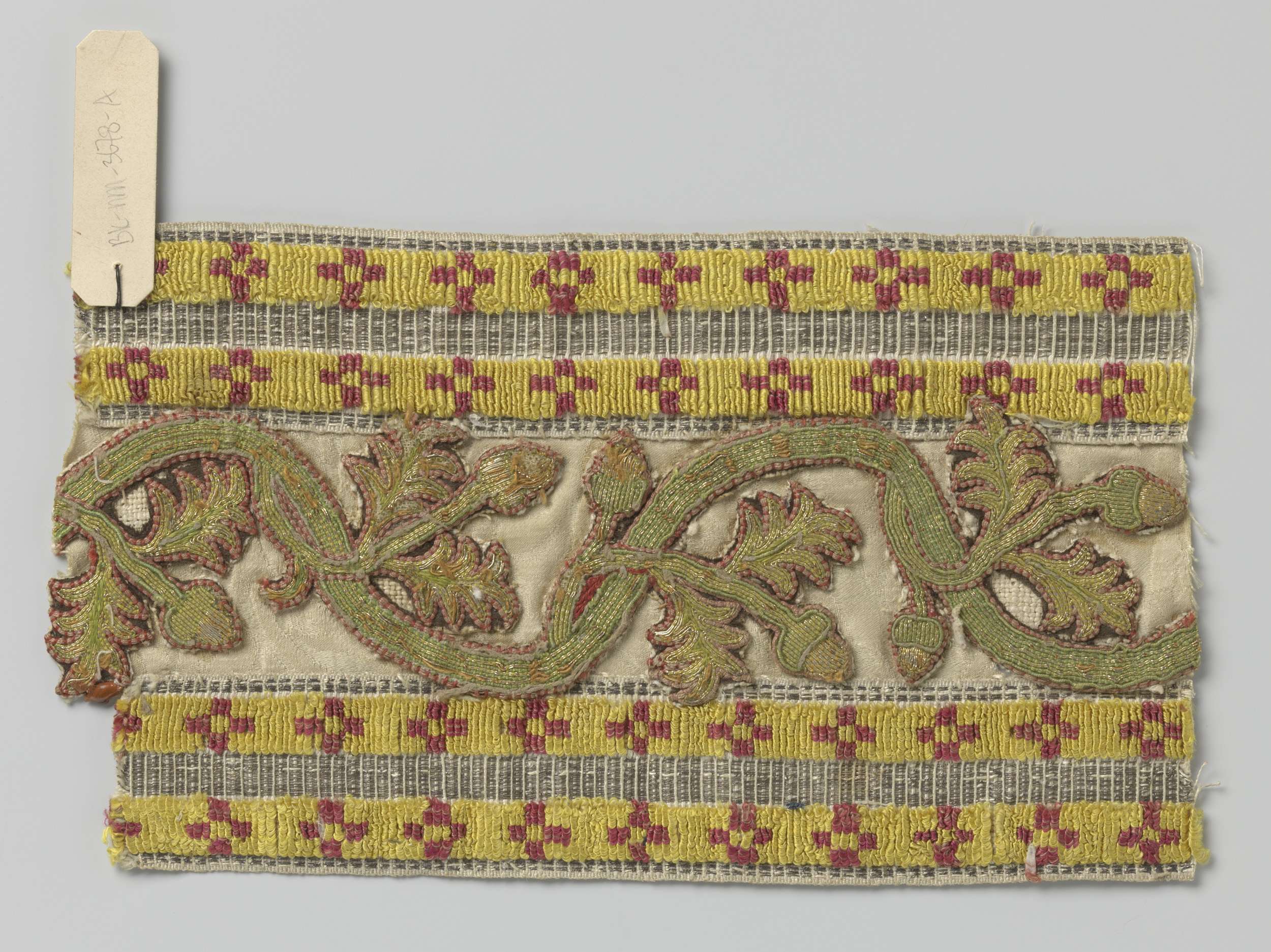 Linnen fragment waarop een grond van zijde met zijde...