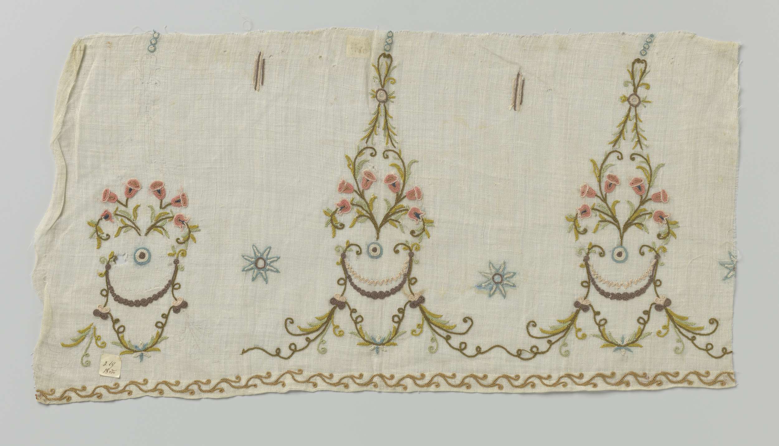 Fragment linnen met veelkleurig borduurwerk