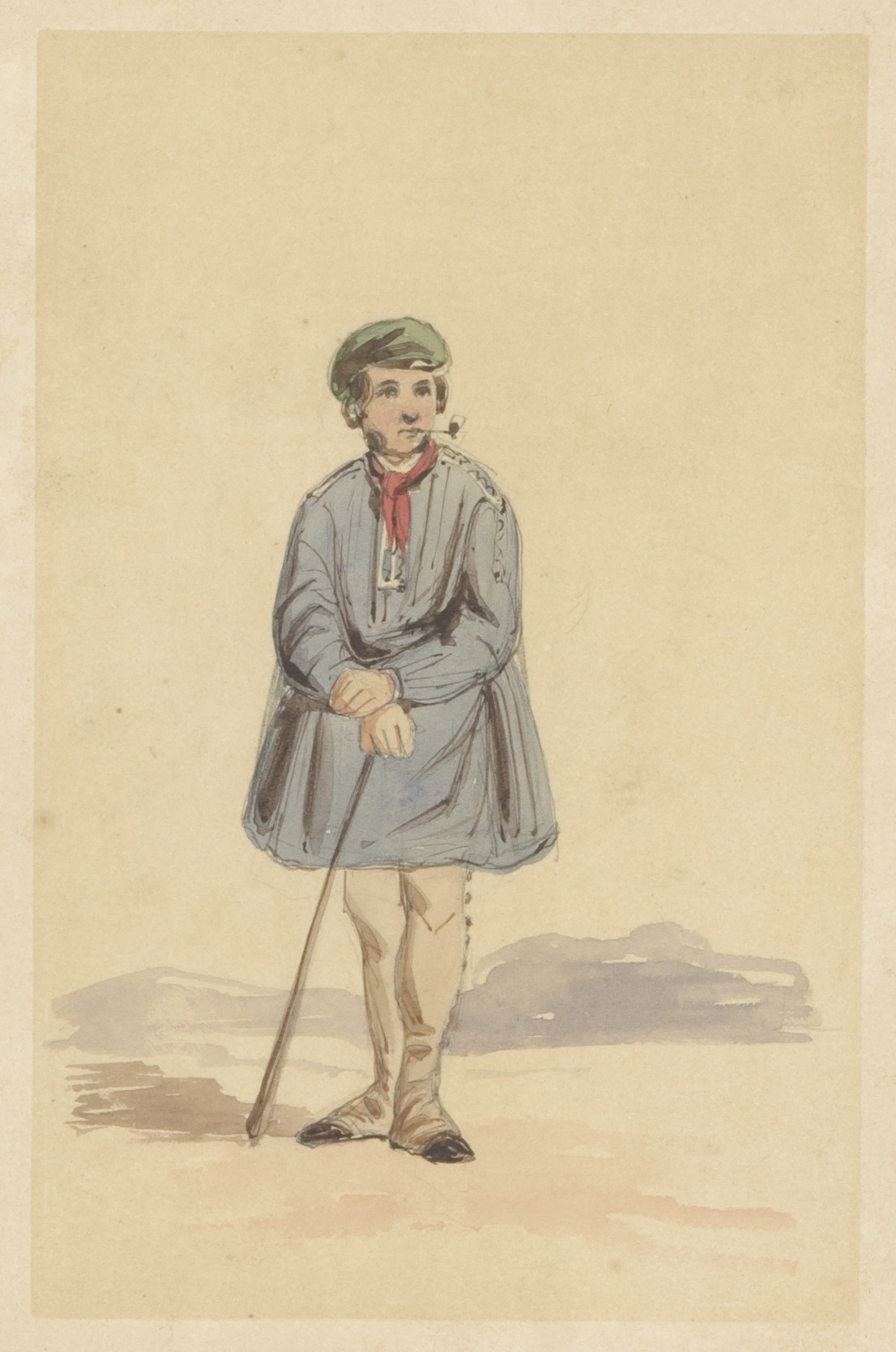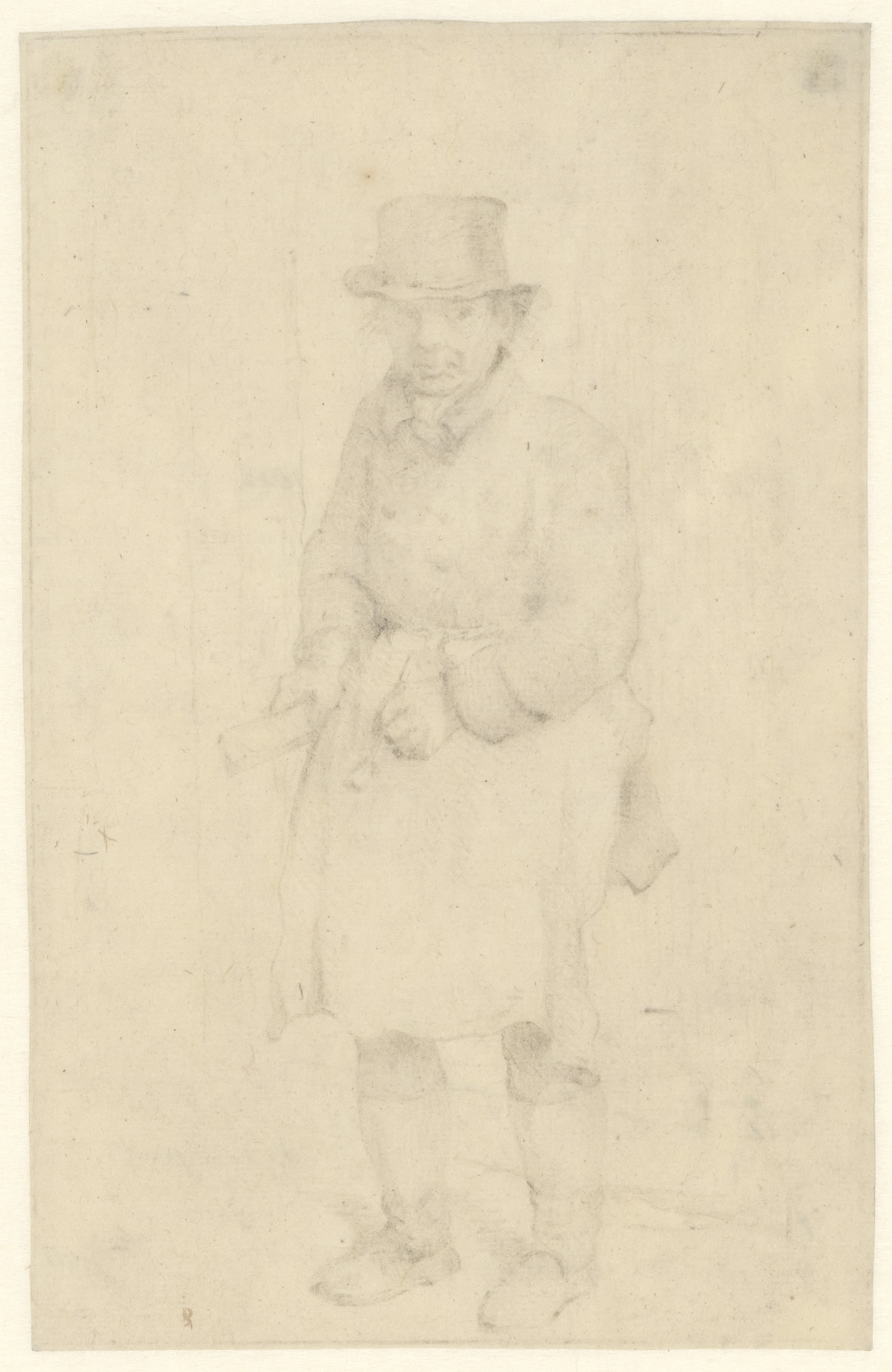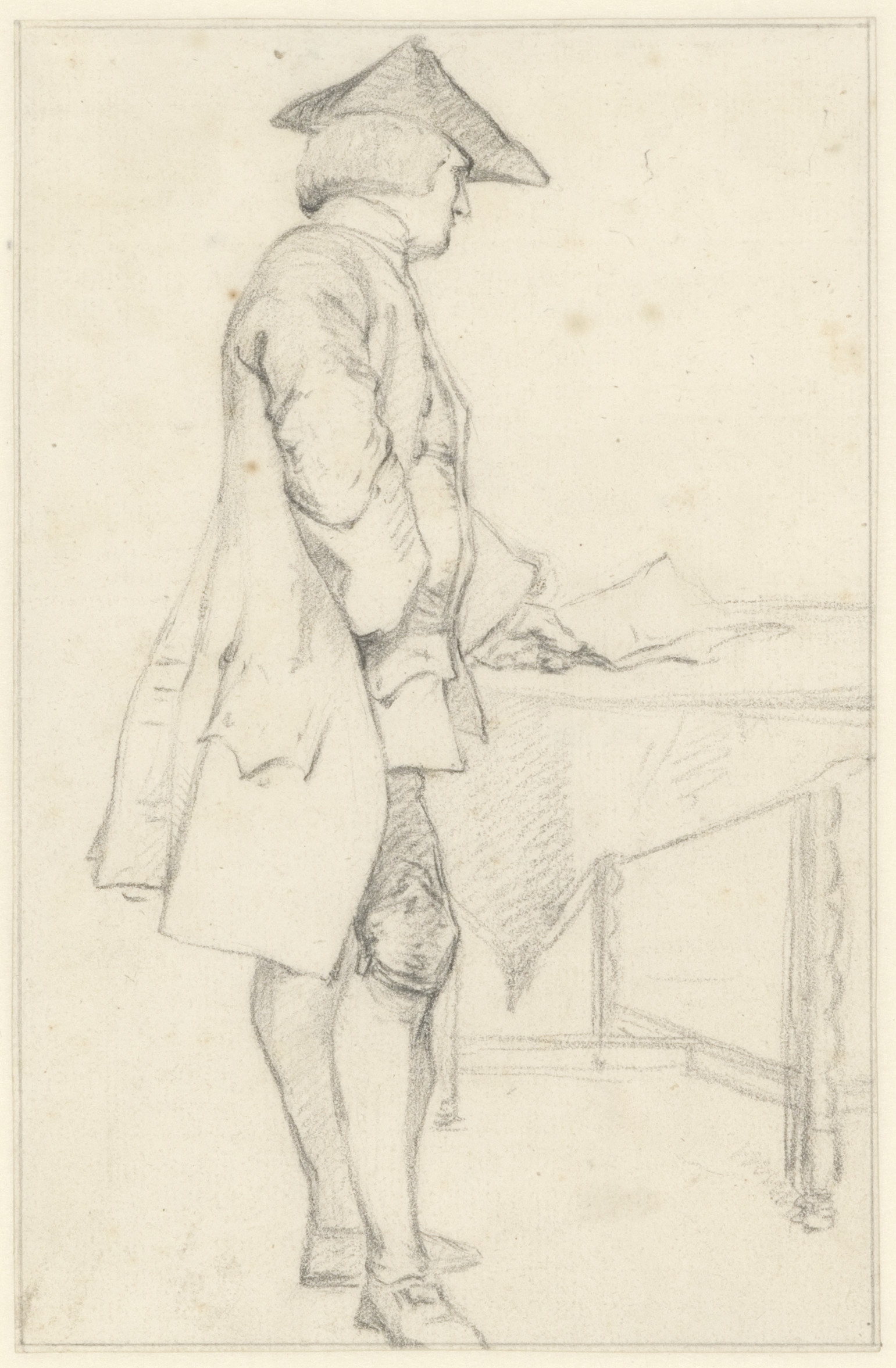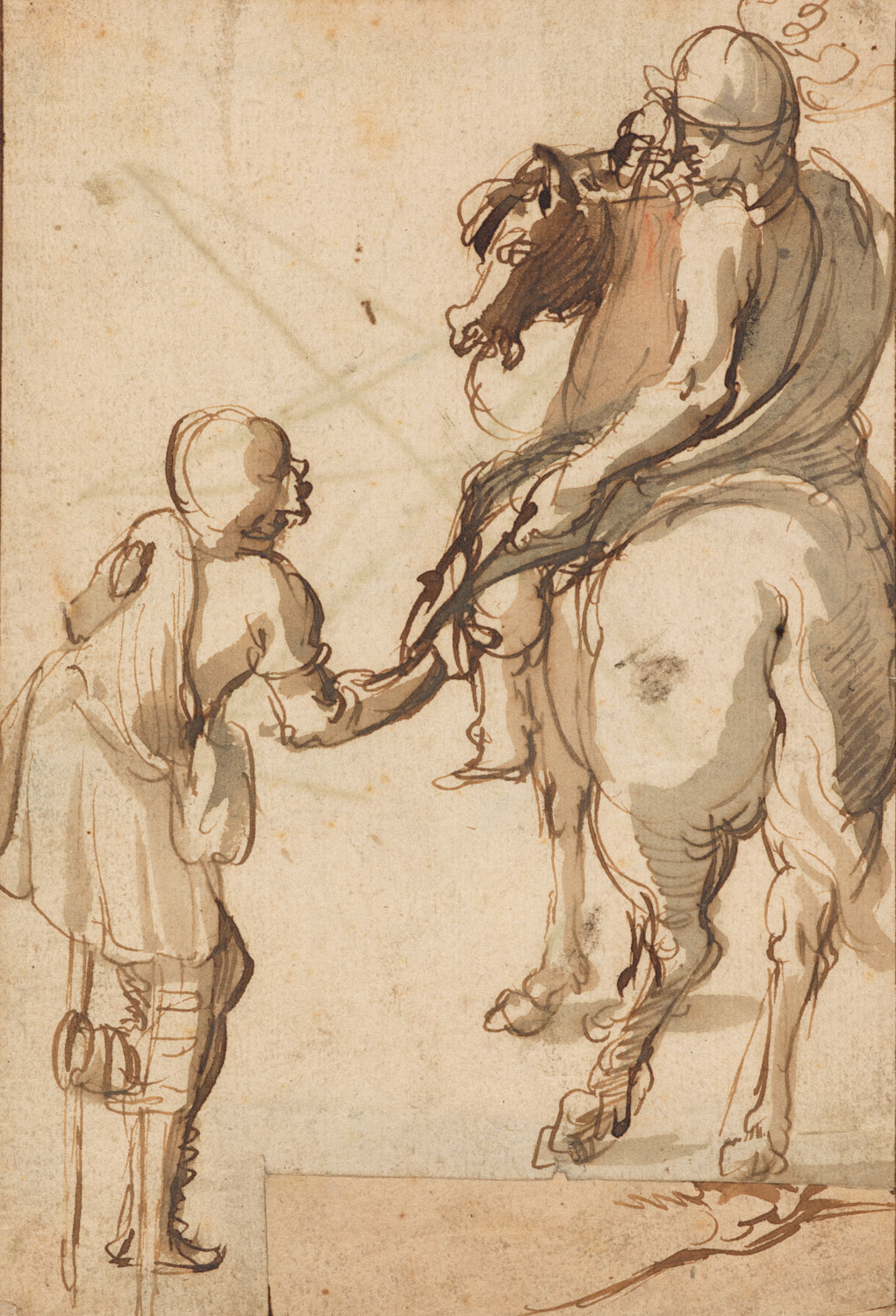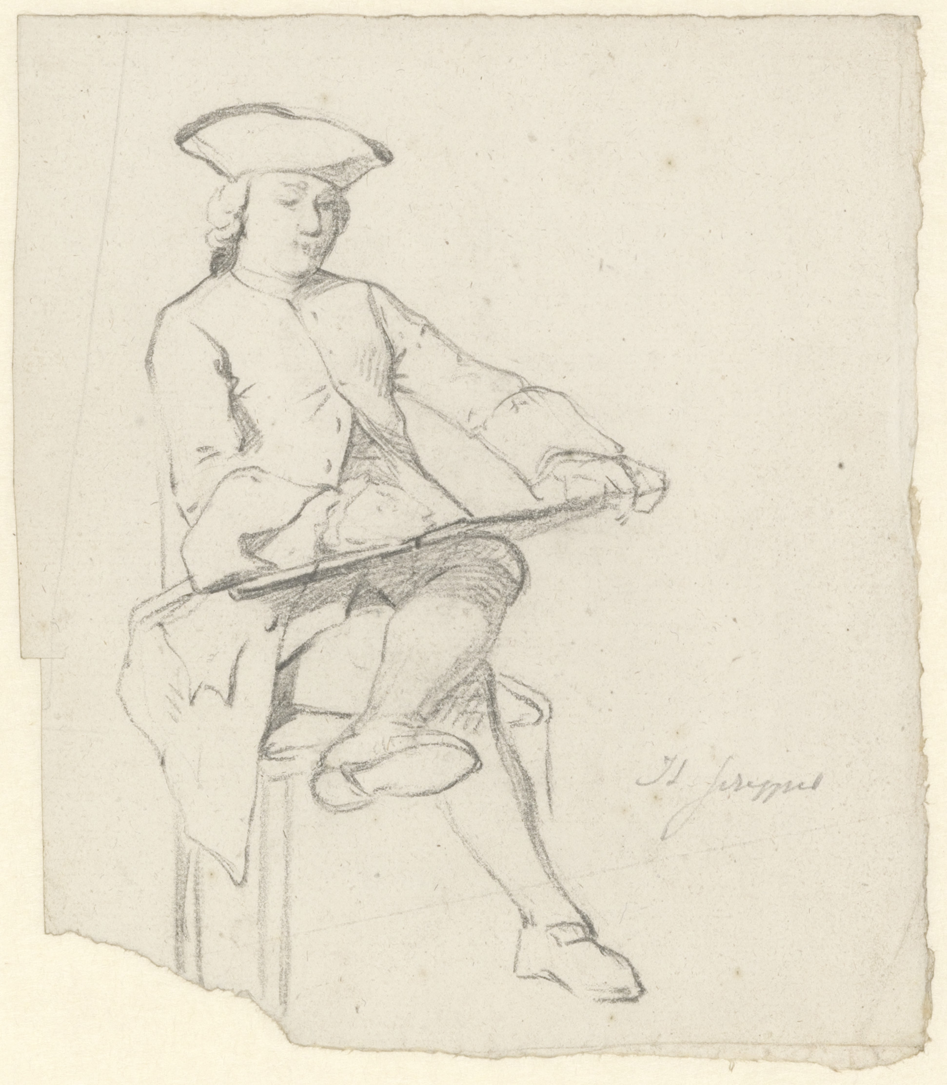 Teekenaar en speelgoedpaardje; verso: boer met hark,...