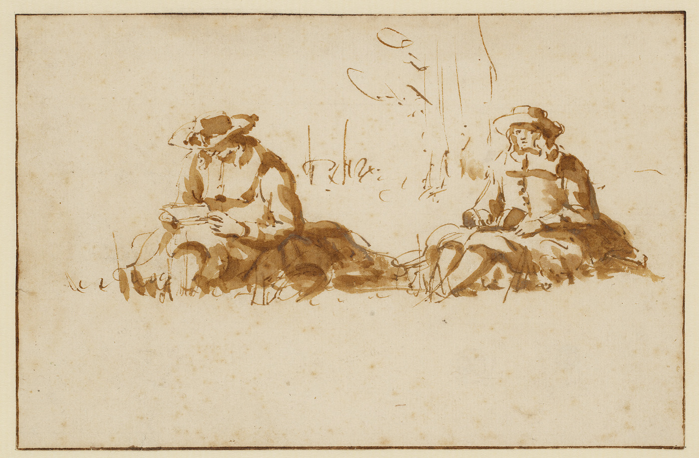 Twee buitenzittende tekenaars
