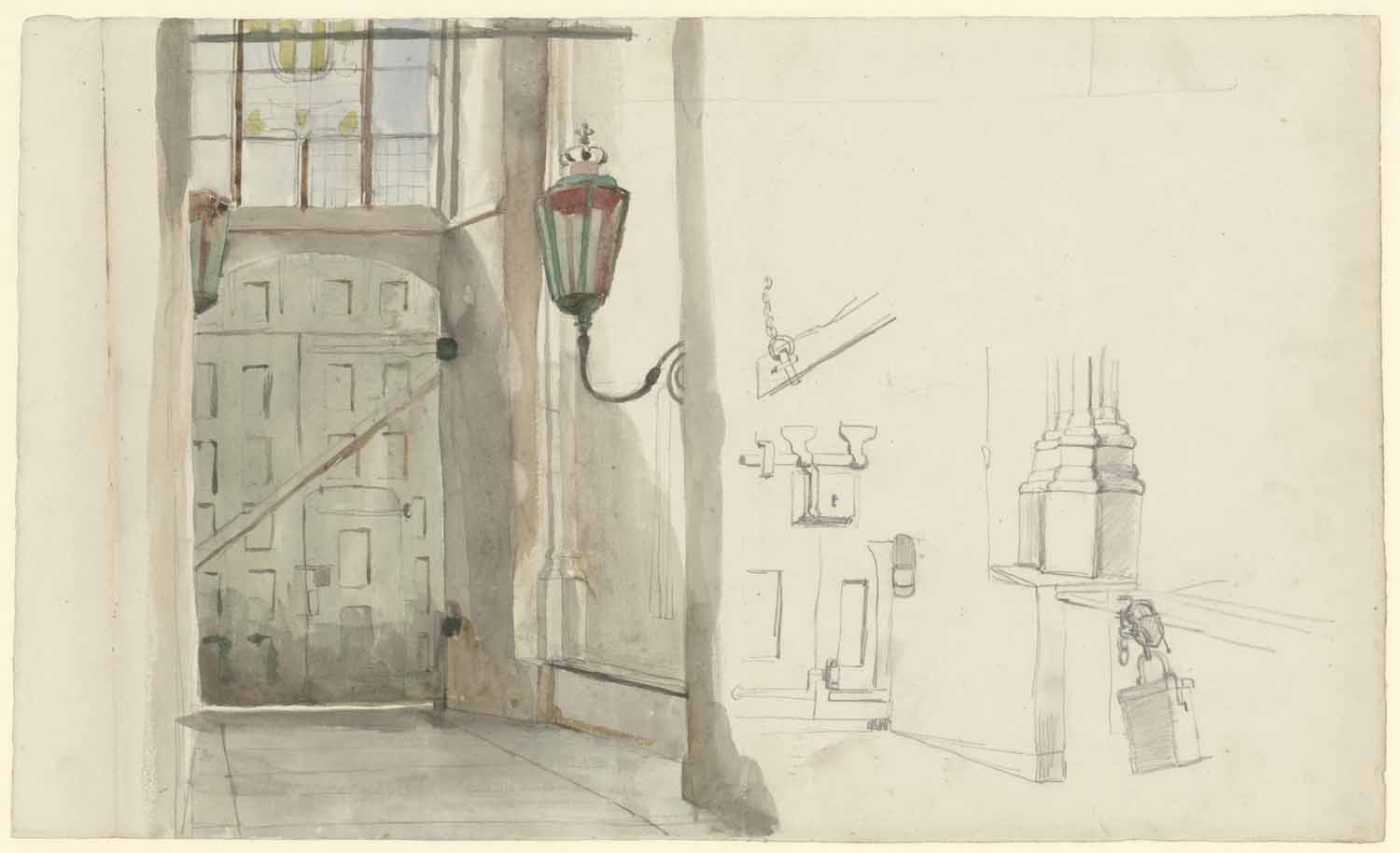 Studieblad: deur en ingang van een kerk, en studies ...