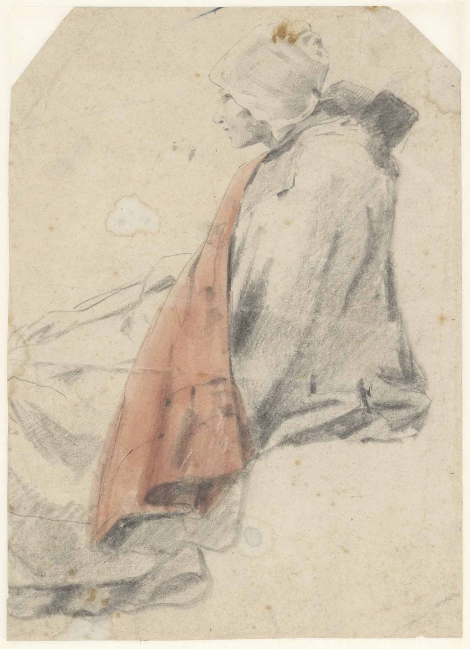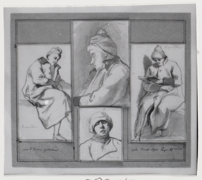 Studieblad: twee studies van oude vrouw en twee in k...