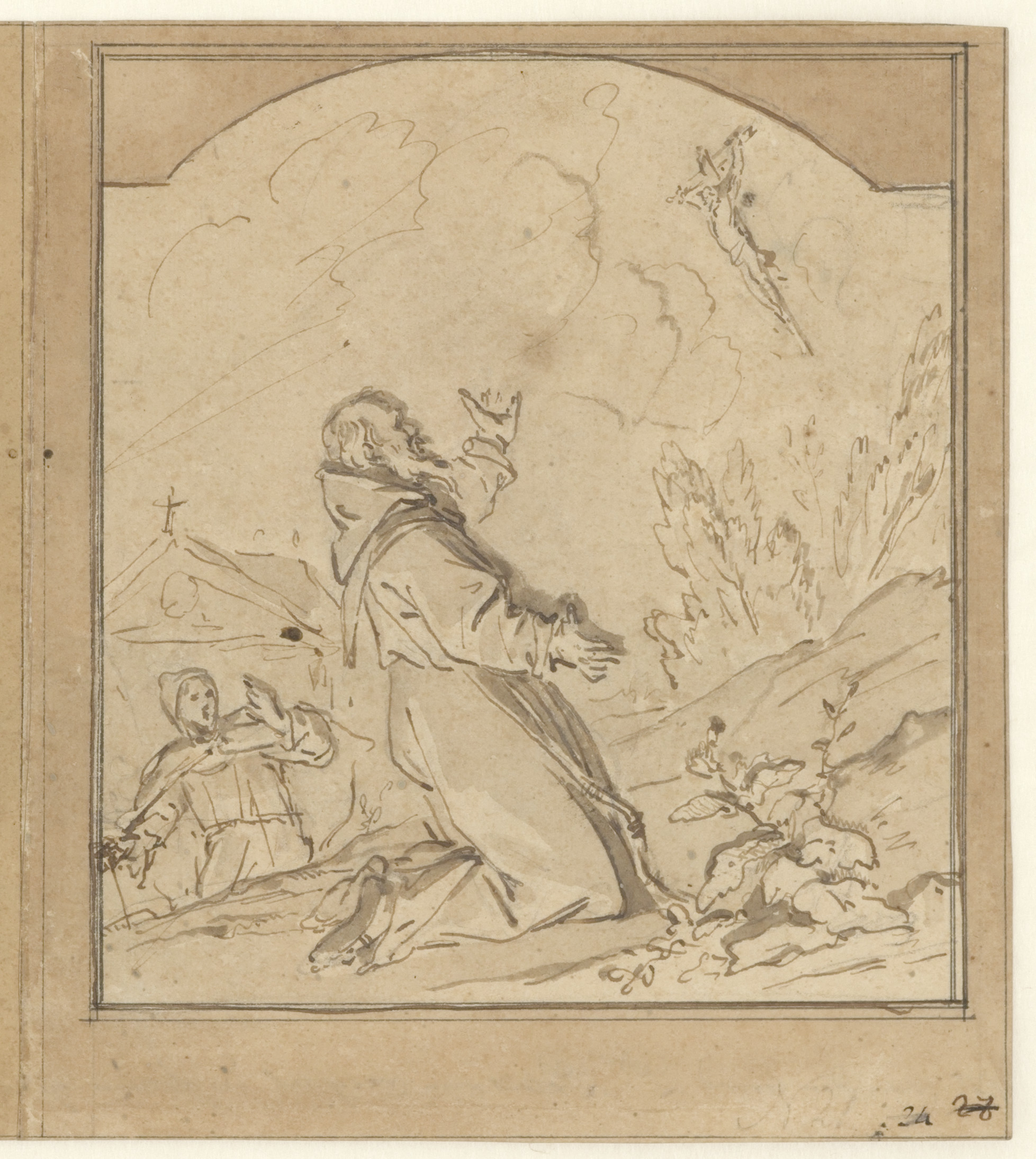Studieblad met landschapstudies en historiestudies, ...