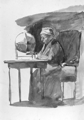 Studieblad: voet, zelfportret in het atelier, en vro...