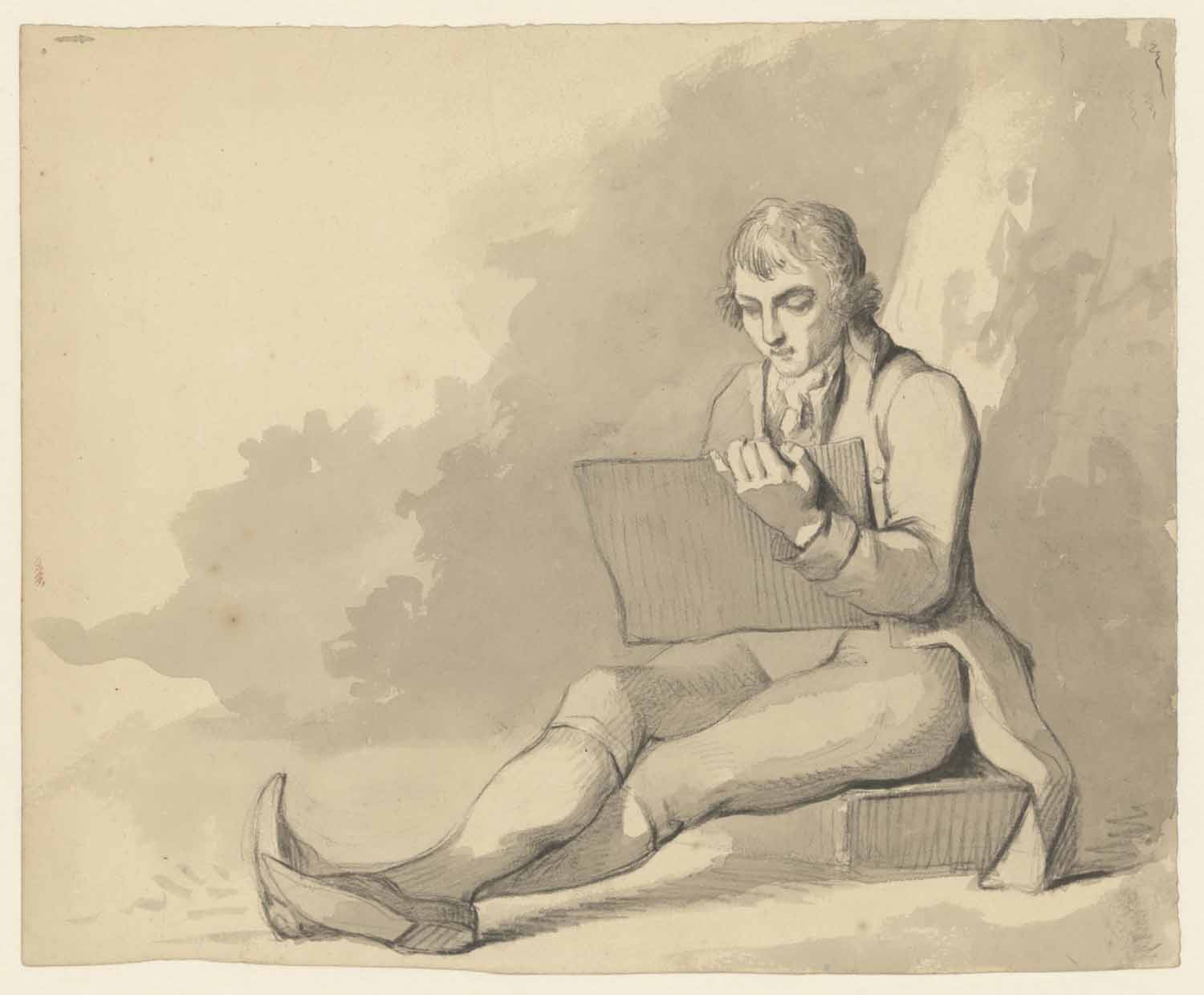 Portretstudie van een zittenden jongen man, ten halv...