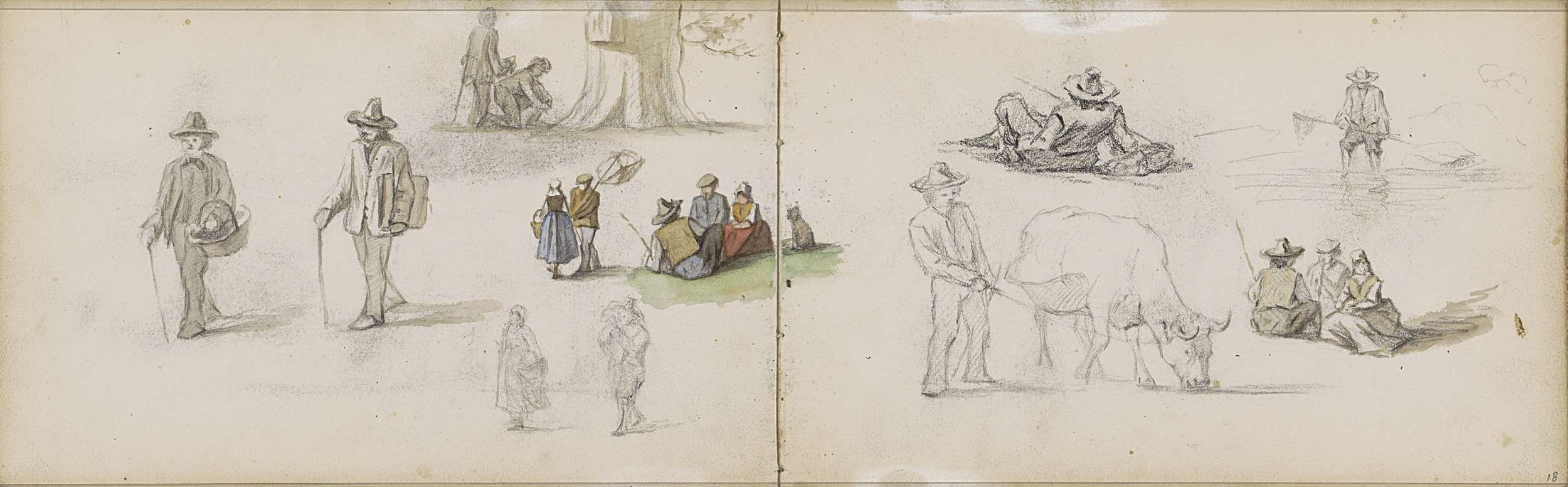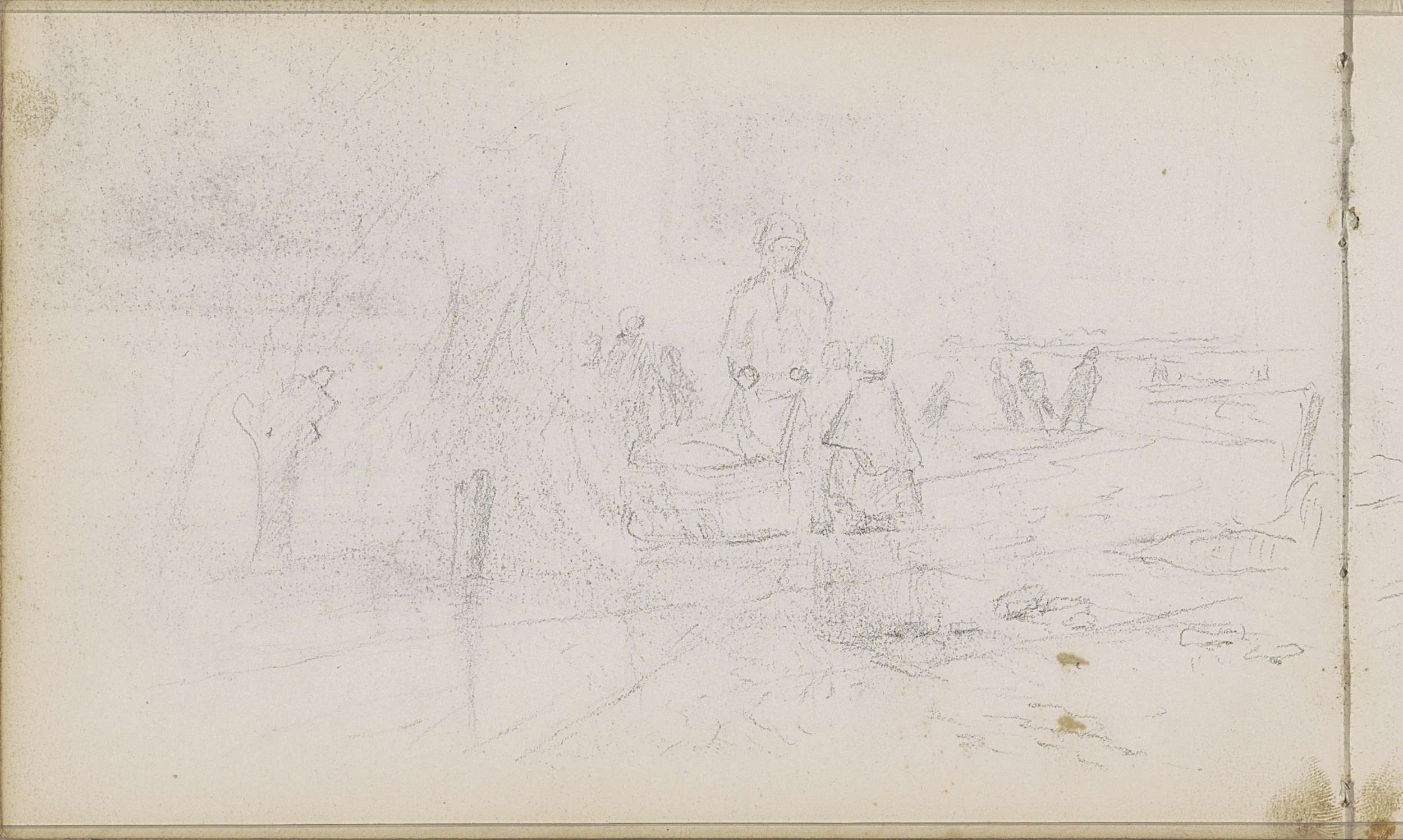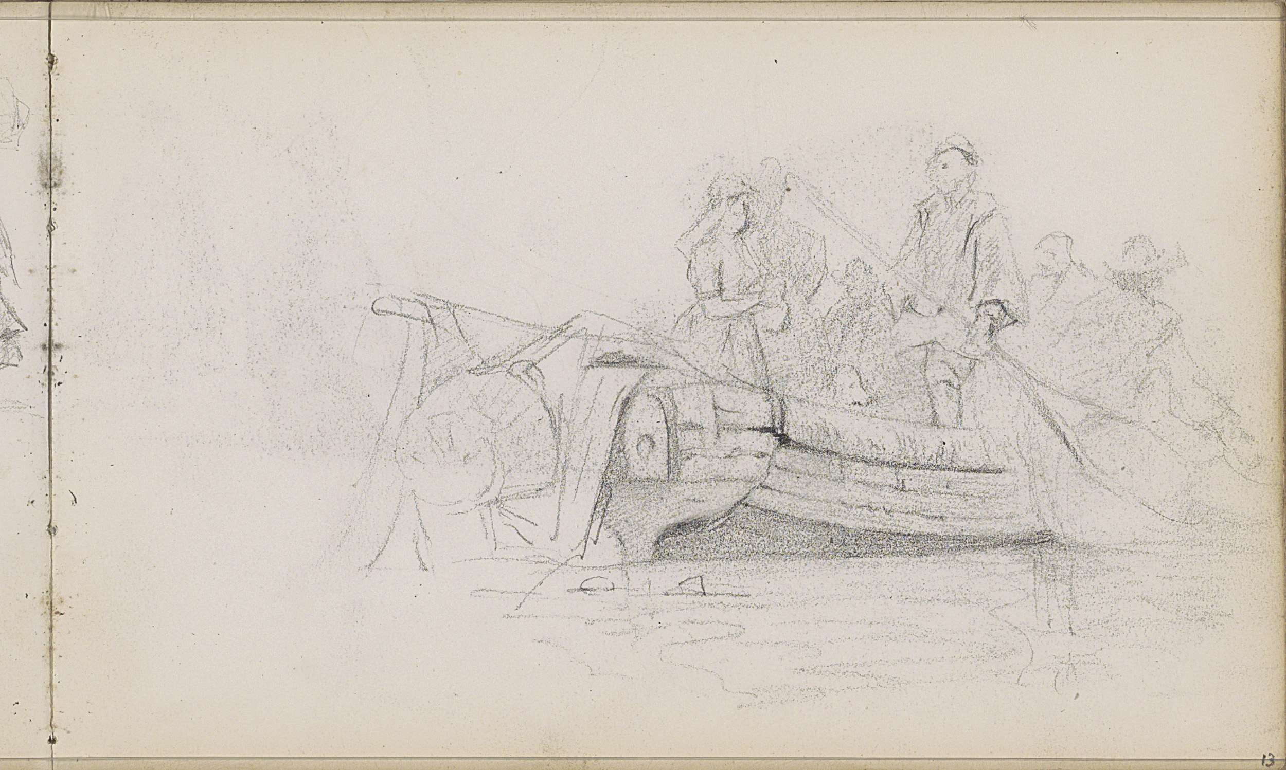Figuren in een roeiboot op het water