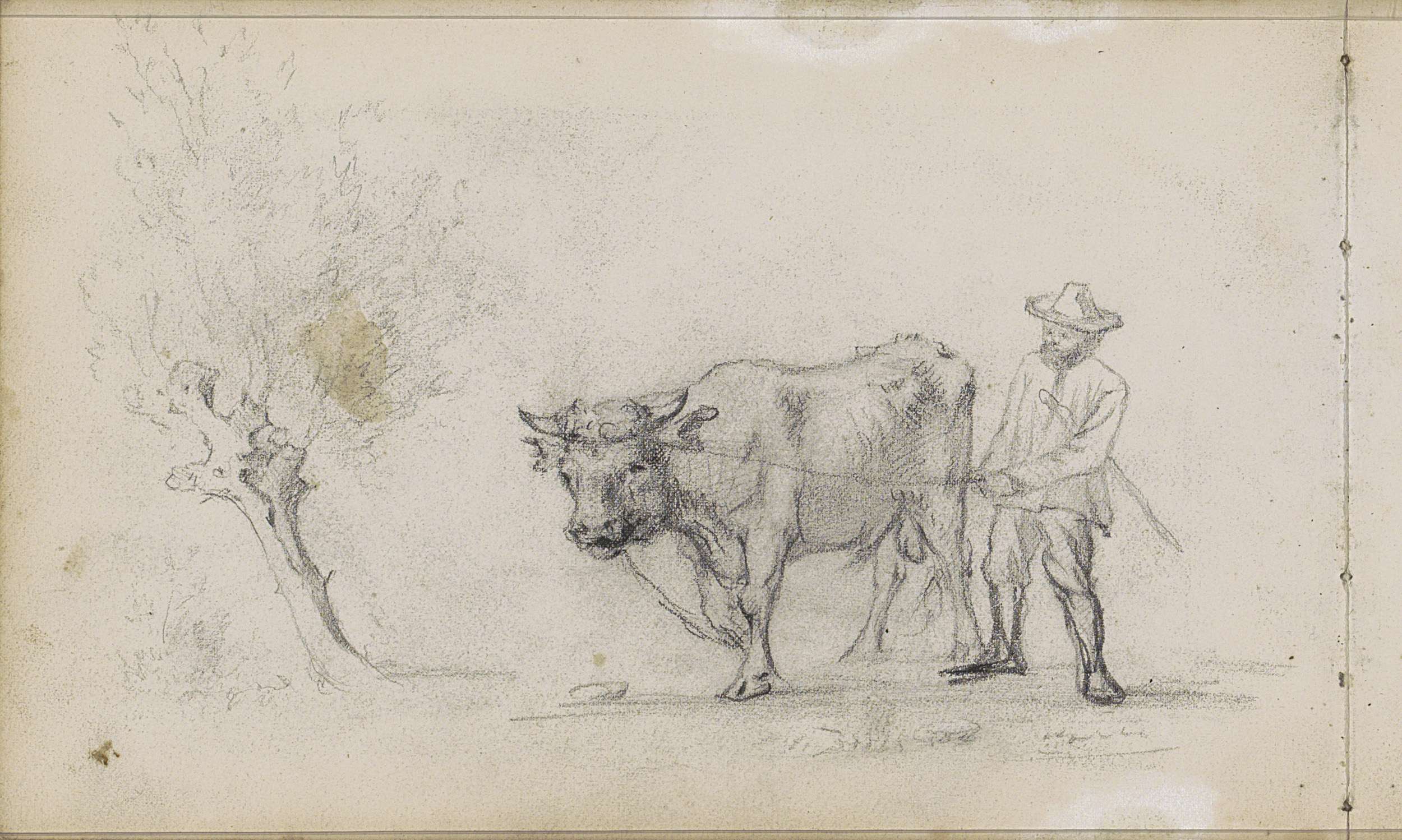 Man met een stier bij een knotwilg