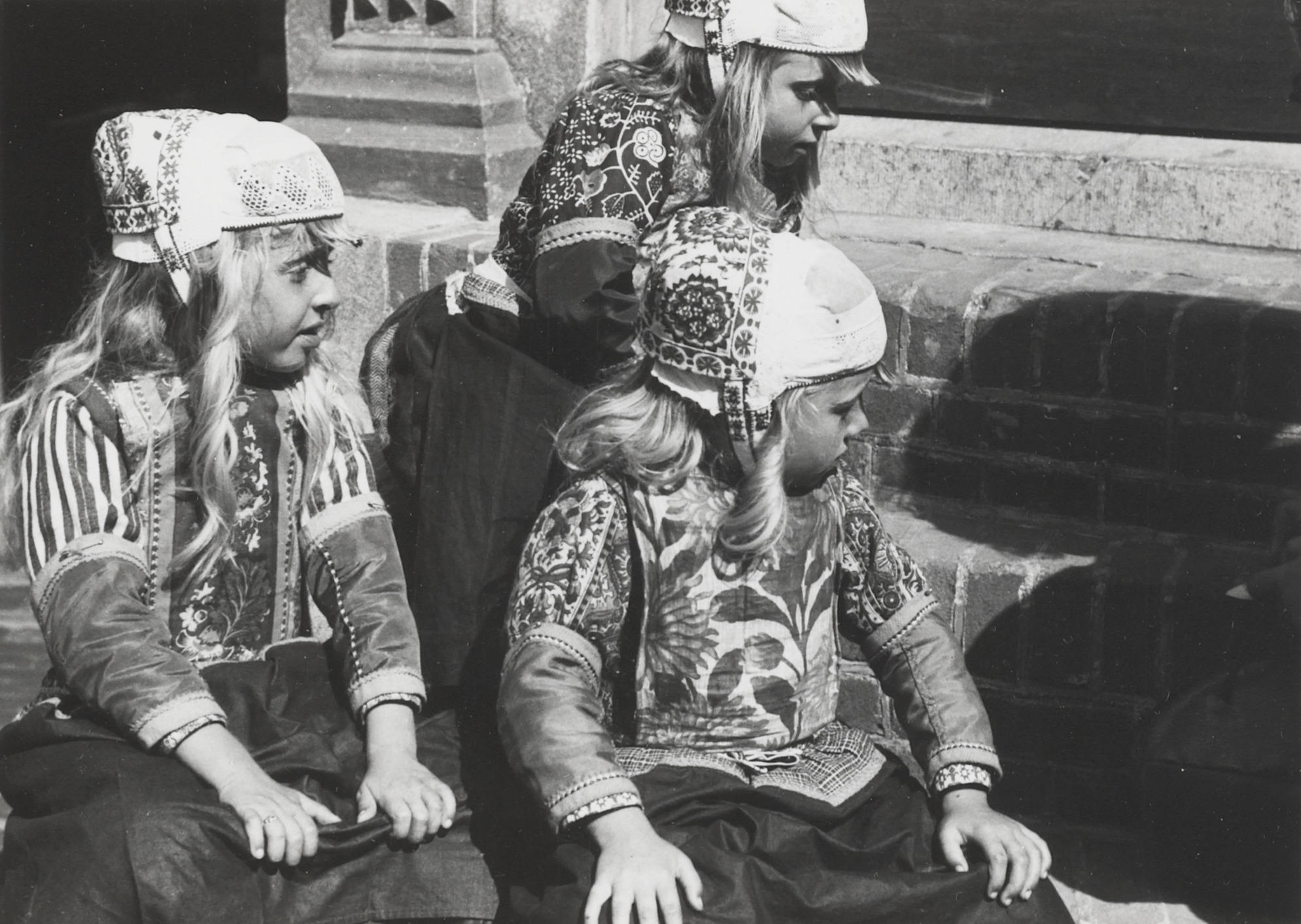 Meisjes in de streekdracht van Marken, 1920–1930 (zw...