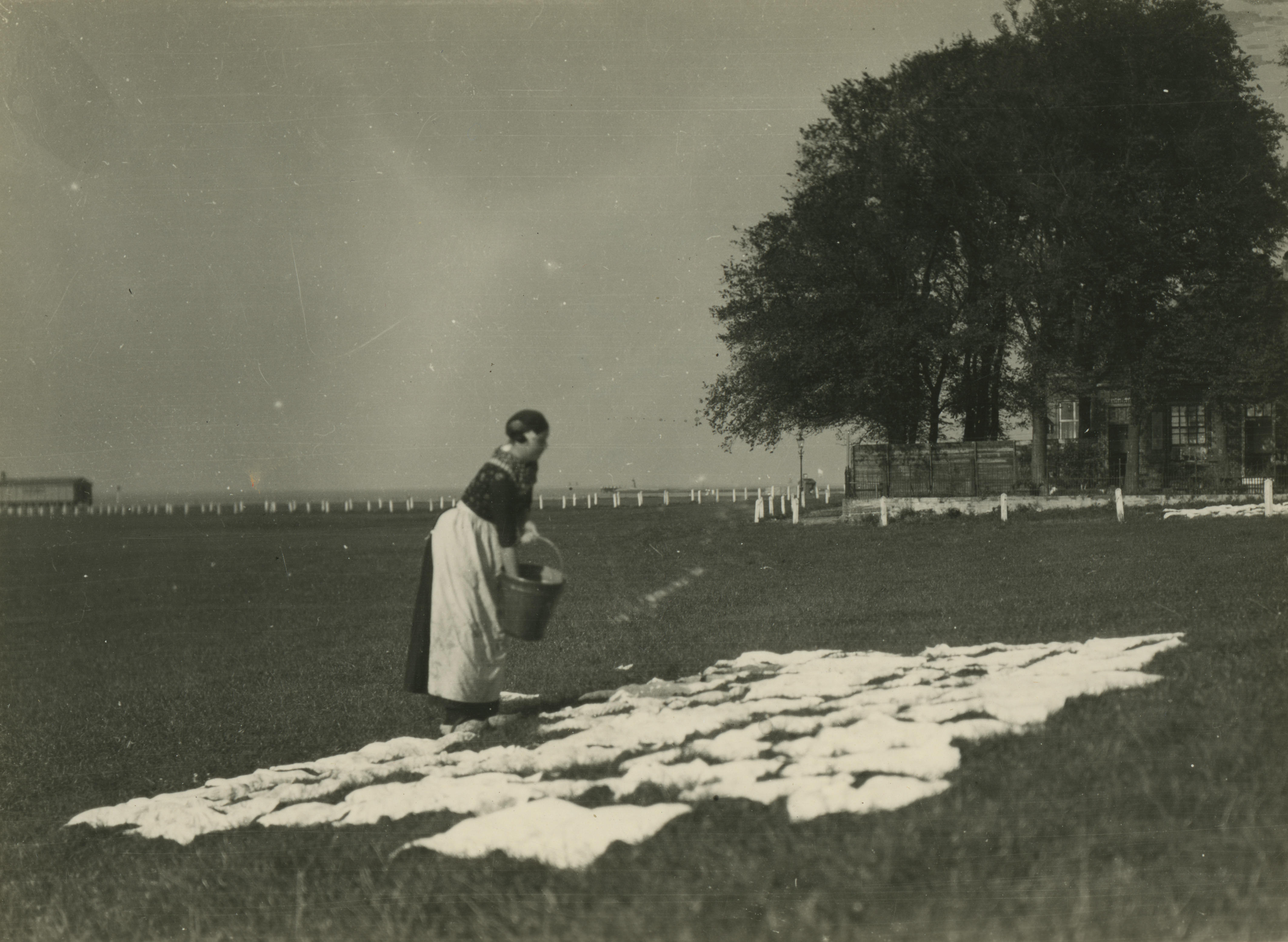 Vrouw in streekdracht op bleekveld, Harderwijk, 1926...