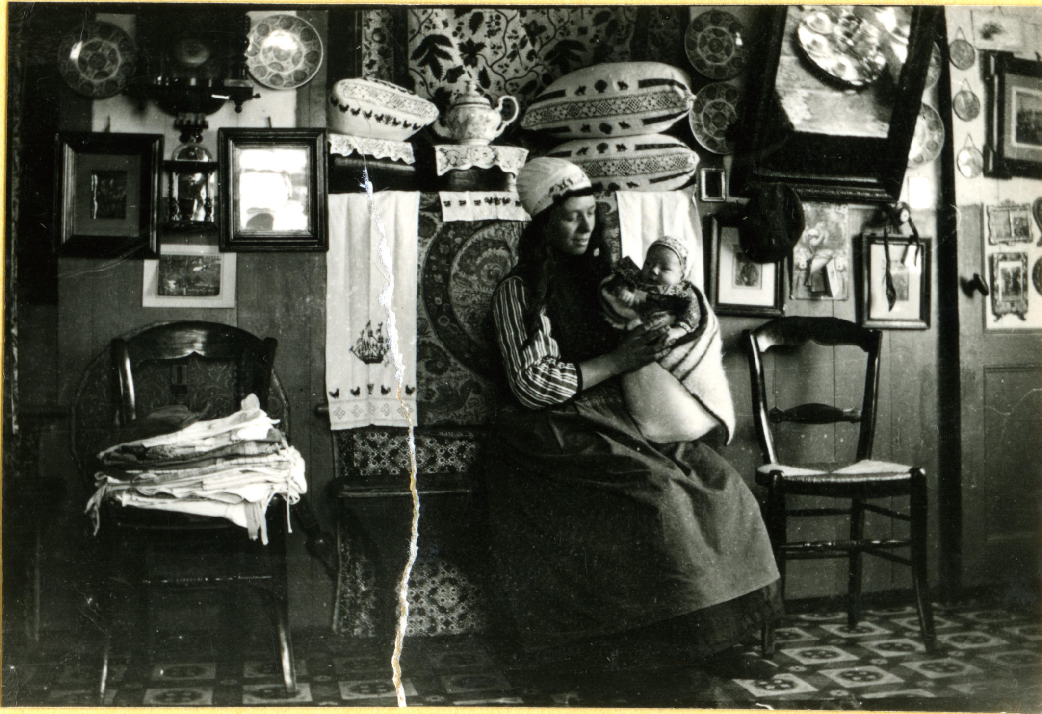 Vrouw en kind in Marker dracht in traditioneel inter...