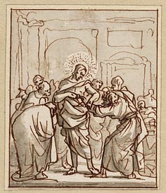 Jezus spreekt tot de Farizeën, terwijl zijn discipel...