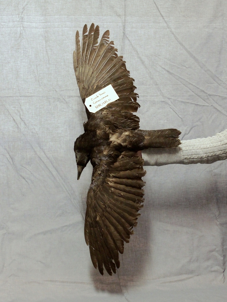 Zwarte kraai; vleugels gespreid; zonder voetstuk