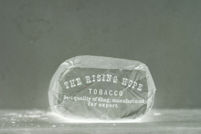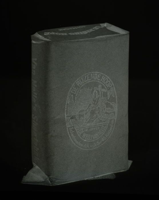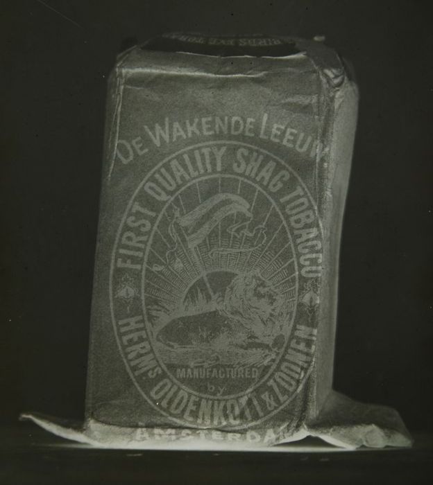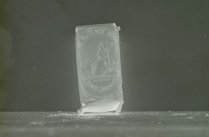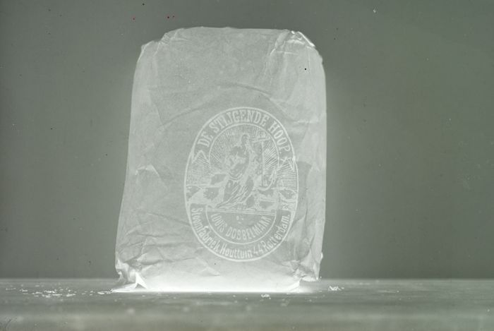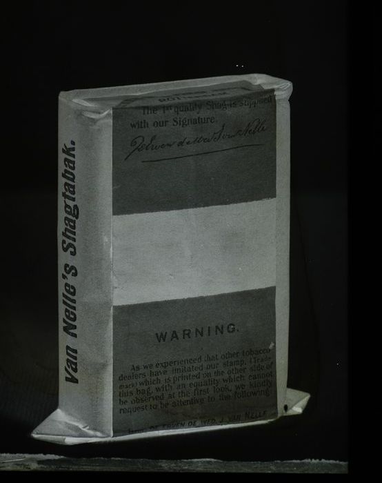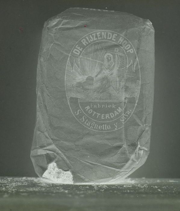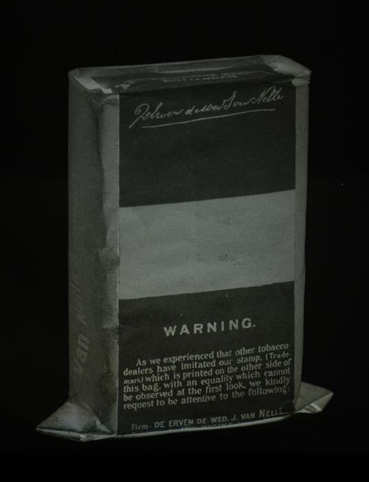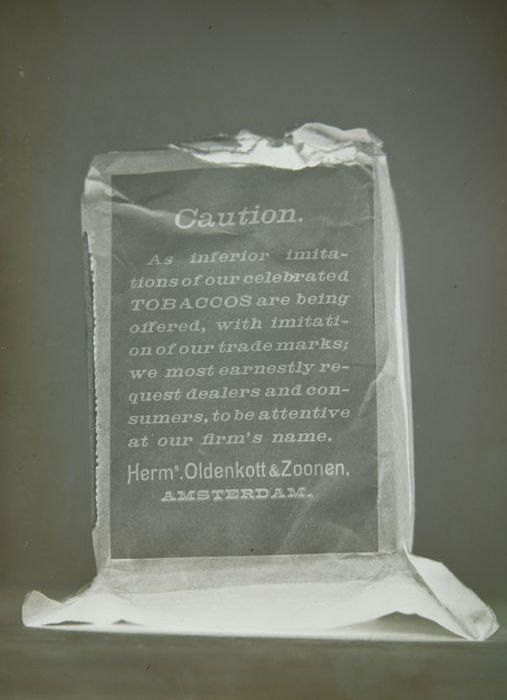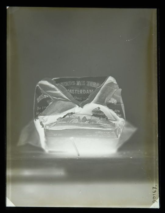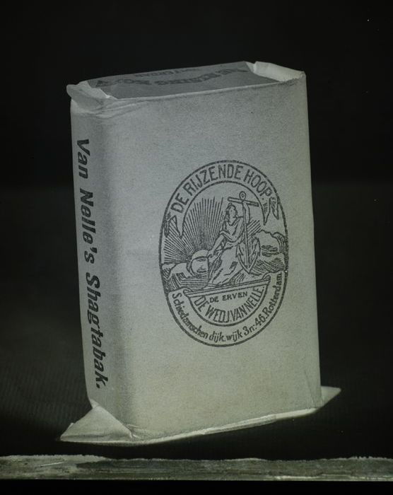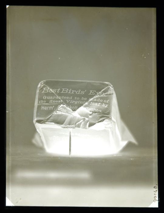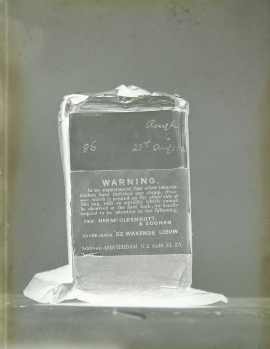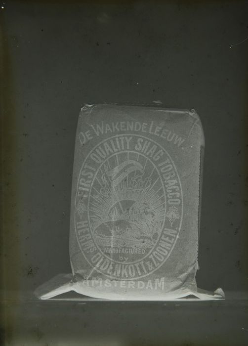 Glasplaatnegatief van Van Nelle met gescheurd pak tabak