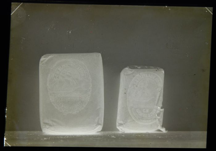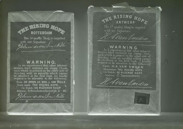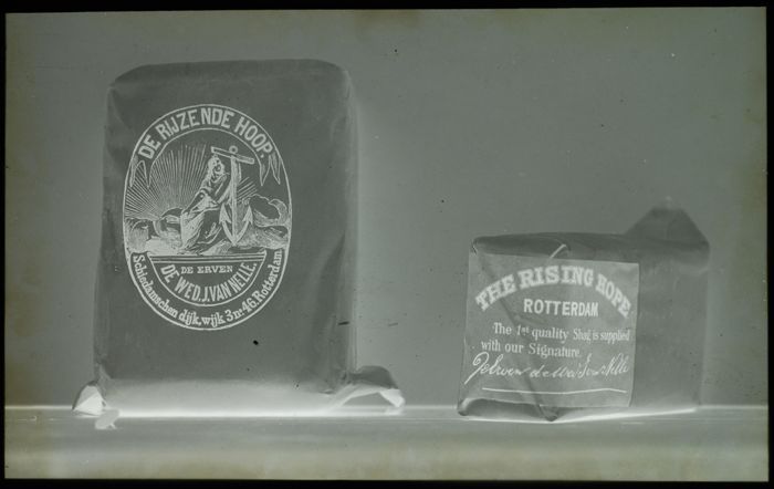 Glasplaatnegatief van Van Nelle met twee pakken tabak