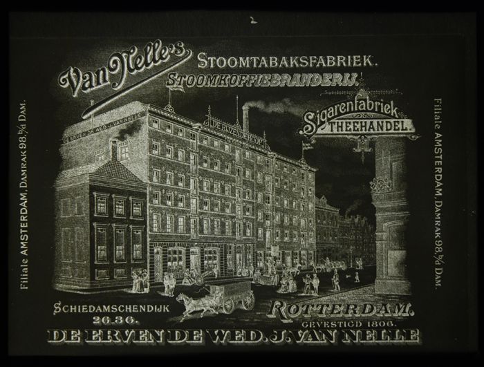 Glasplaatnegatief van Van Nelle met pak tabak De Rij...