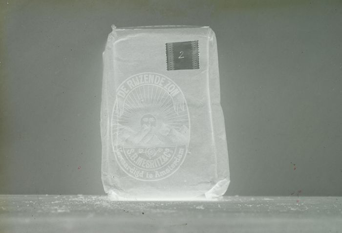 Glasplaatnegatief van Van Nelle met achterkant pak t...