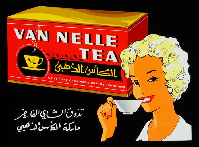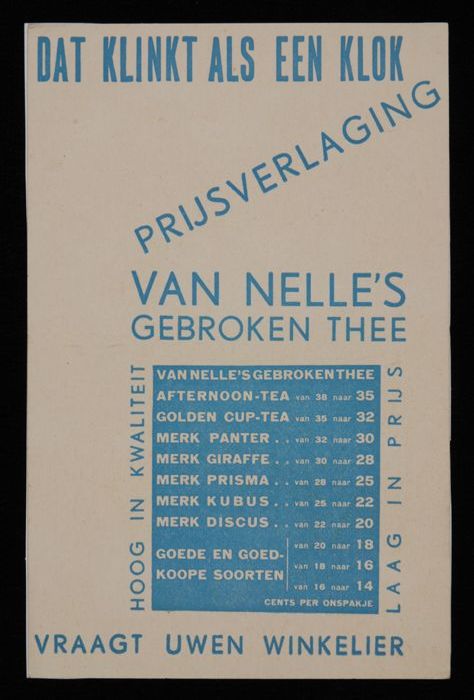 Kaart of klein reclamebord Van Nelle's thee met wijz...