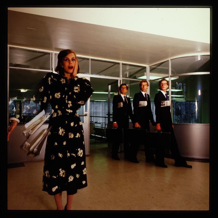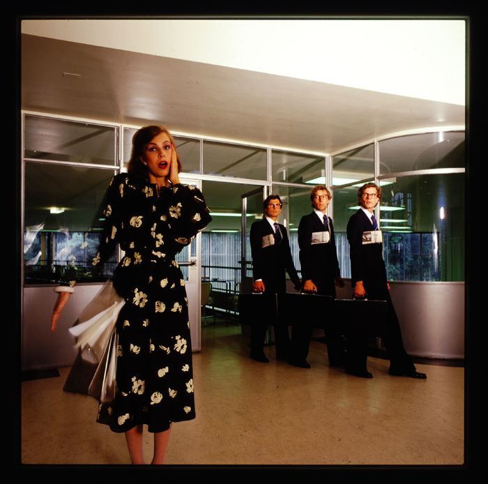 Glasdia van Van Nelle met mode foto in de fabriek, v...