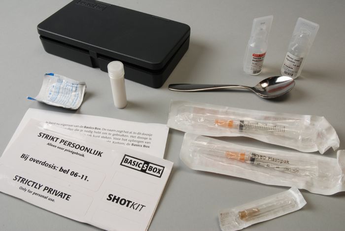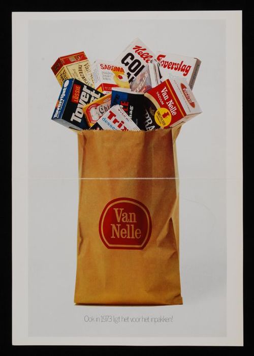 Map met donkerblauwe verpakkingen van Van Nelle voor...