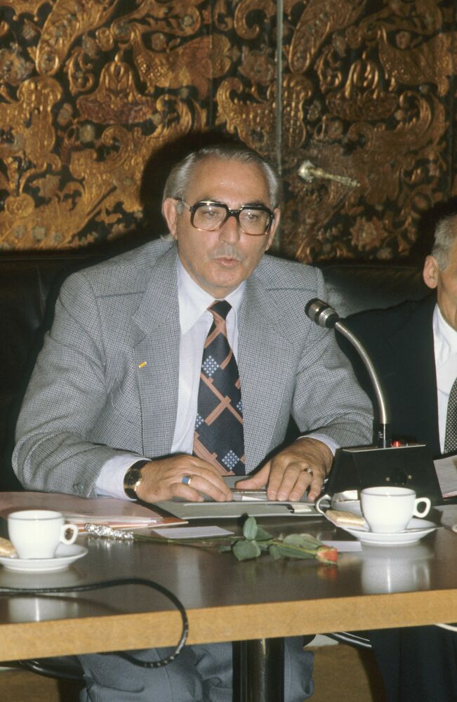 Wethouder J. de Graaf aan de vergadertafel van de ra...