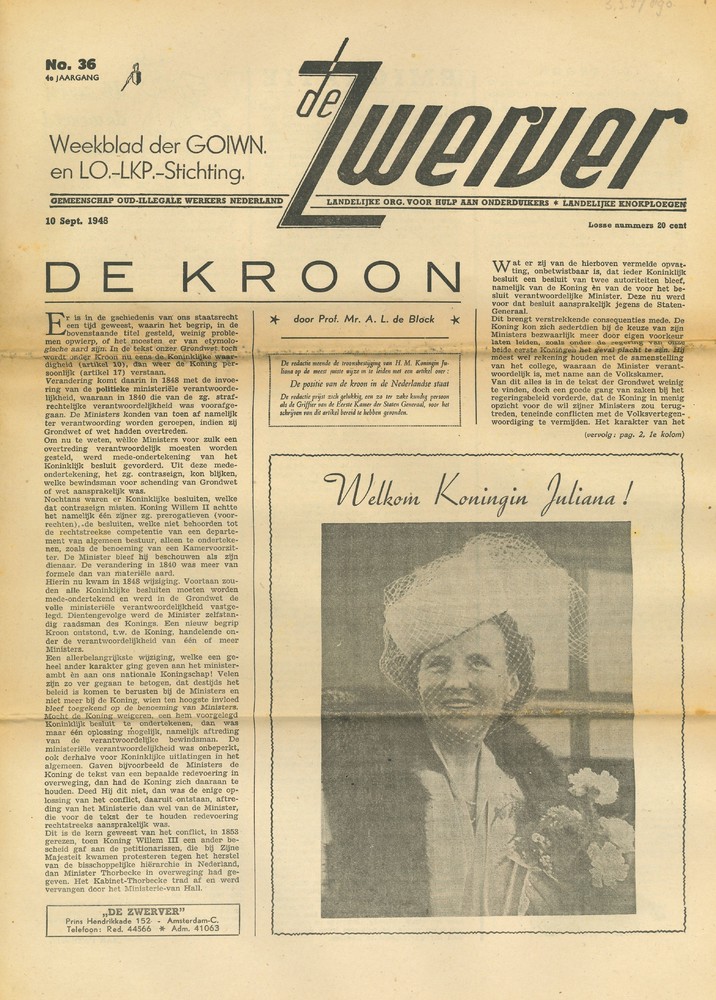 Vrij Nederland, gedrukt te Londen, 20 oktober 1945