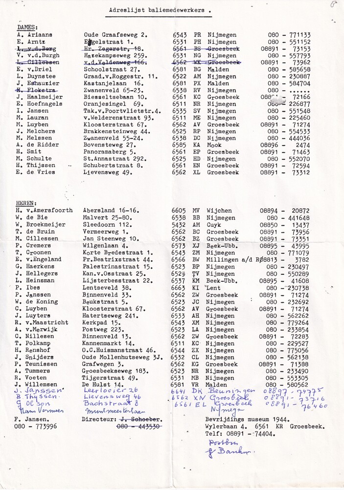 Namenlijst ondergedoken, omgekomen militairen