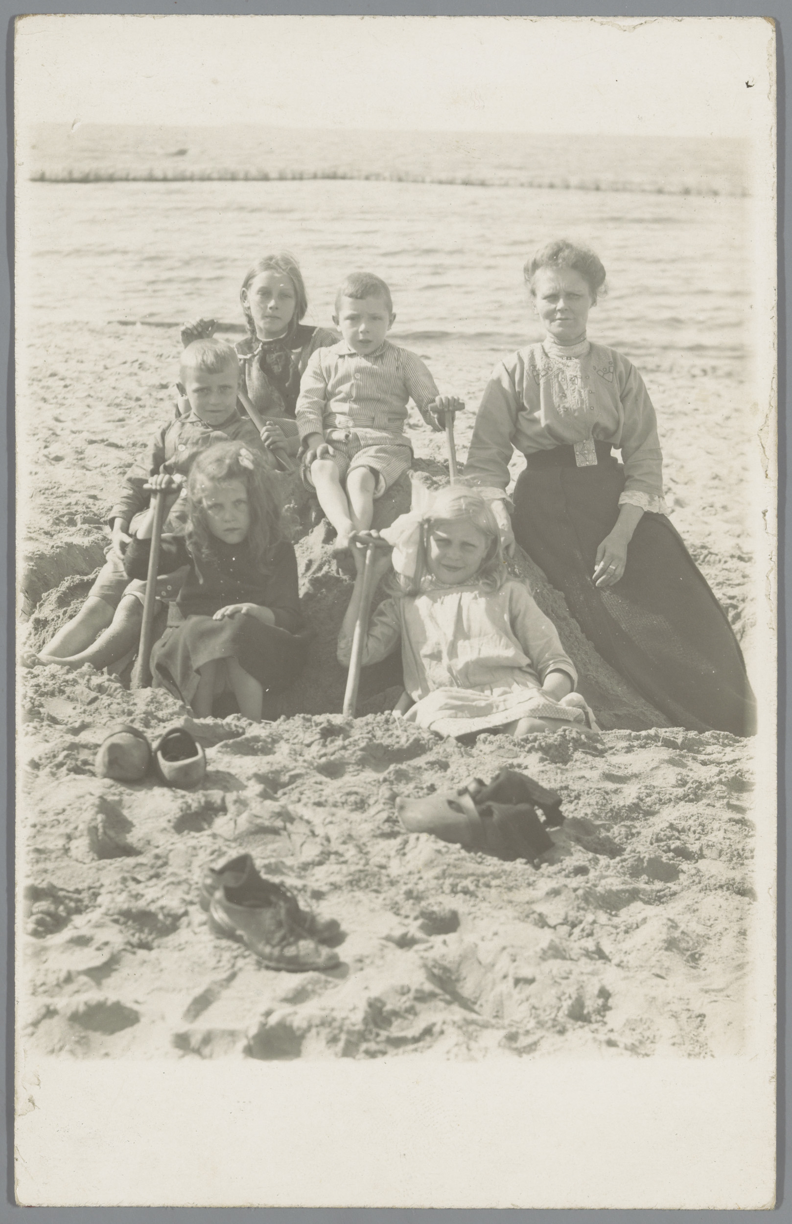 Groepsportret van een onbekende vrouw met vijf kinde...