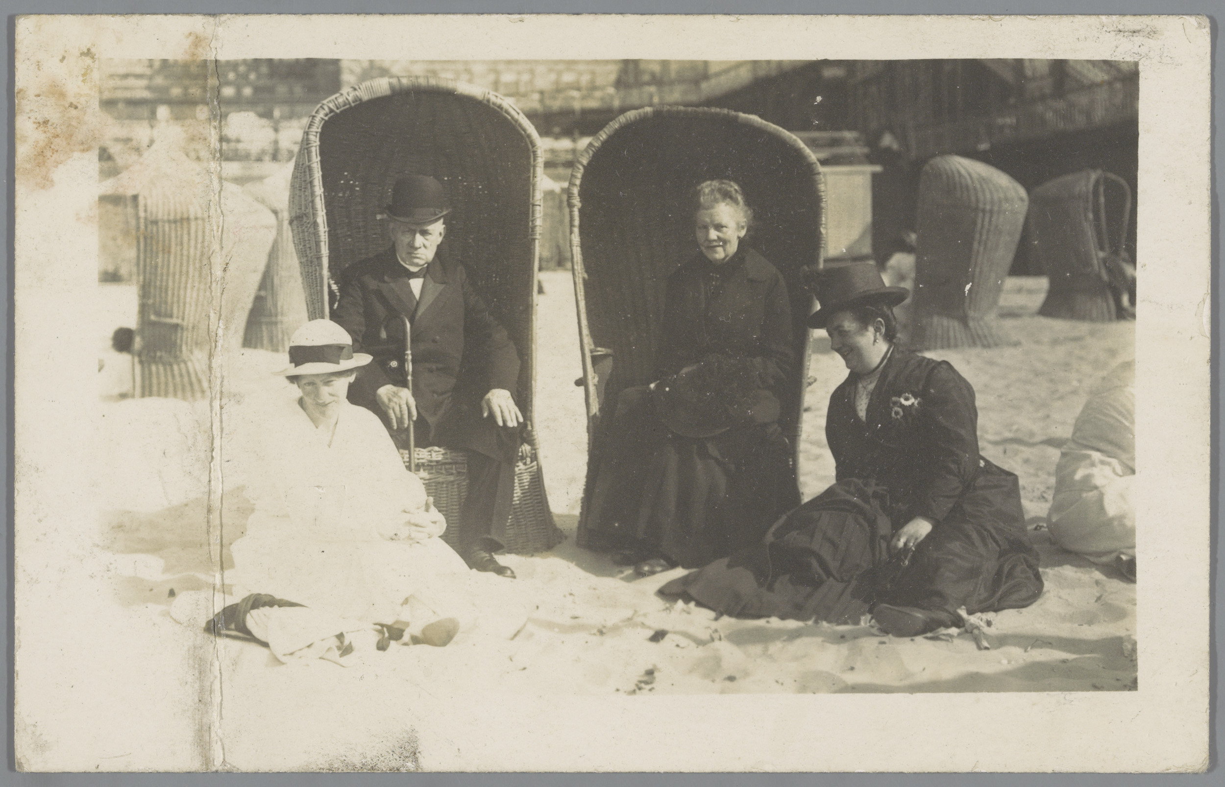 Portret van een onbekende vrouw in een vouwstoel op ...