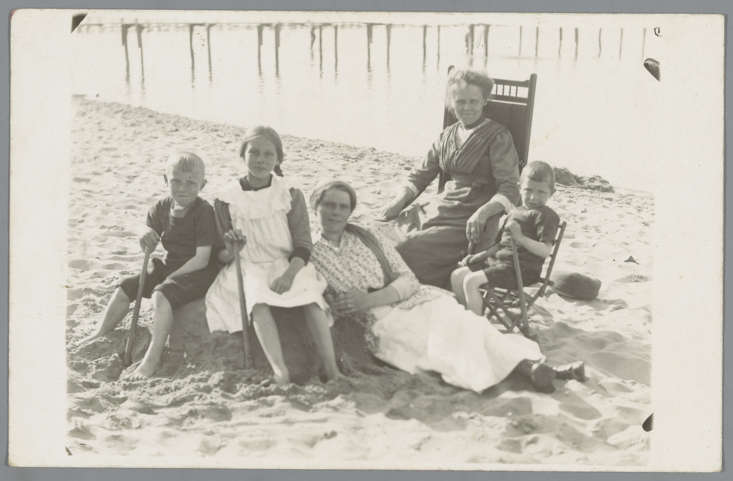 Groepsportret van twee onbekende vrouwen en drie kin...