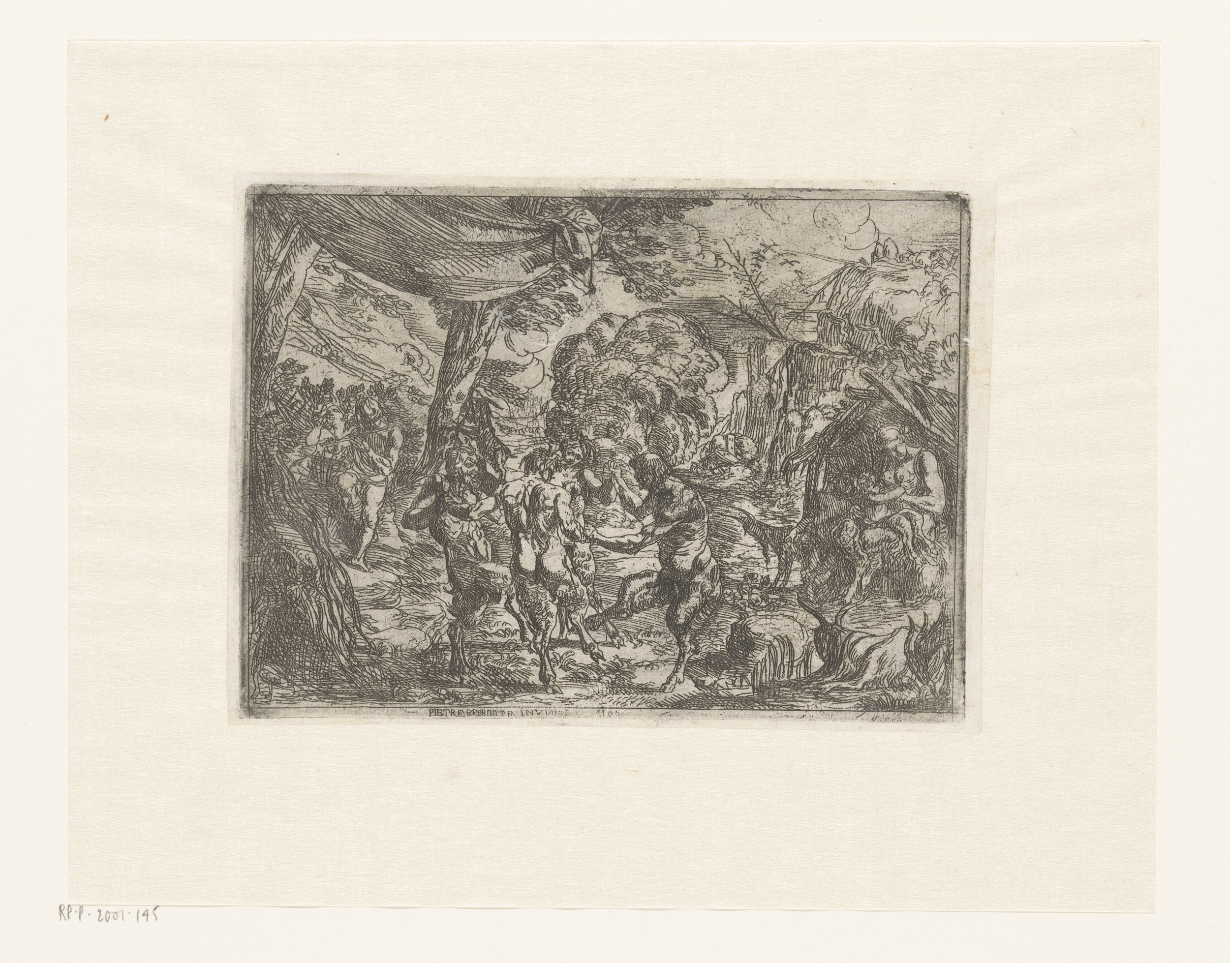 Dansende nimfen en saters in een landschap