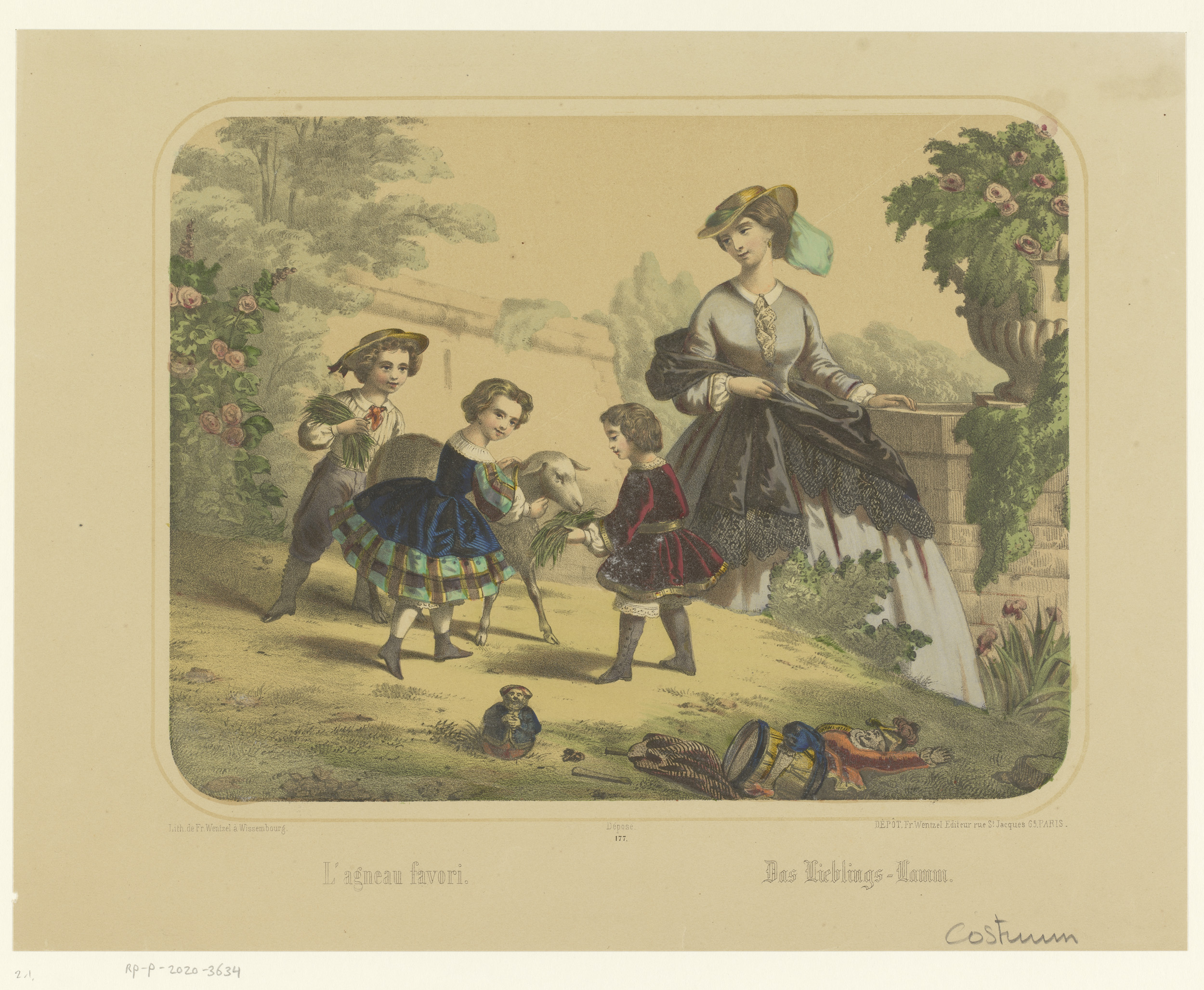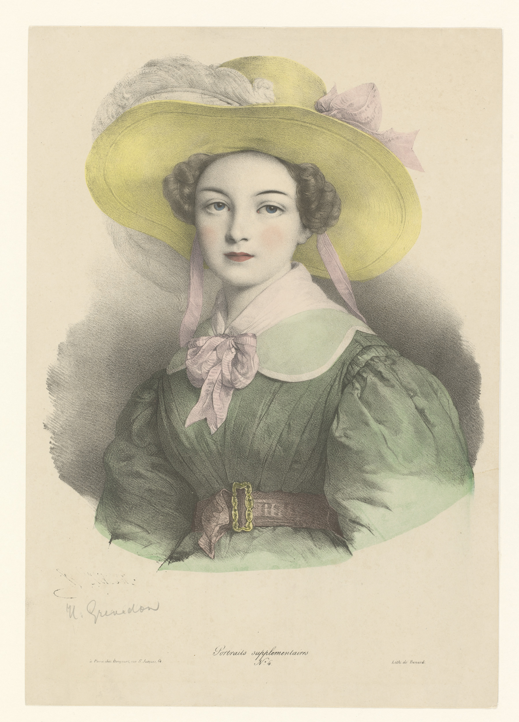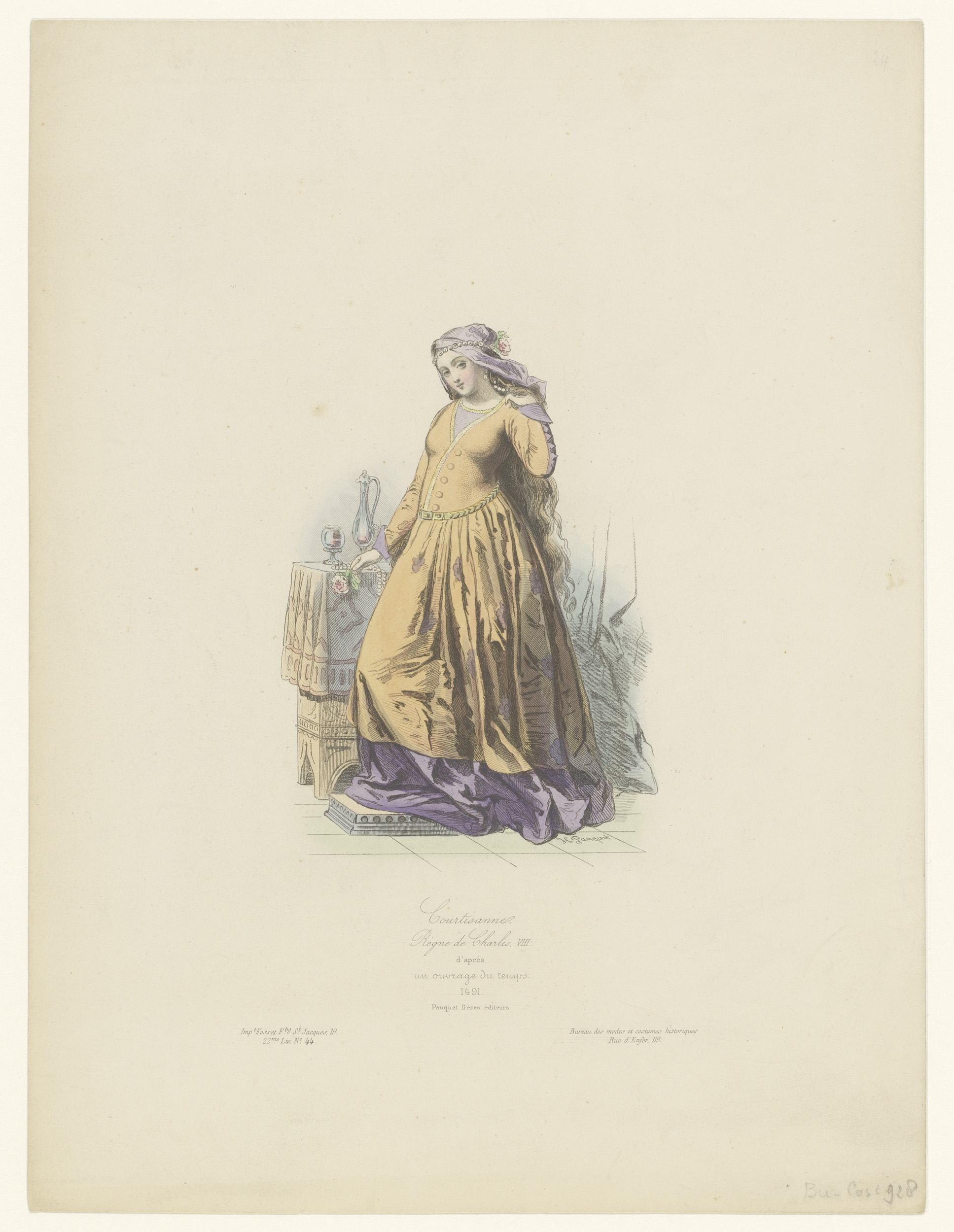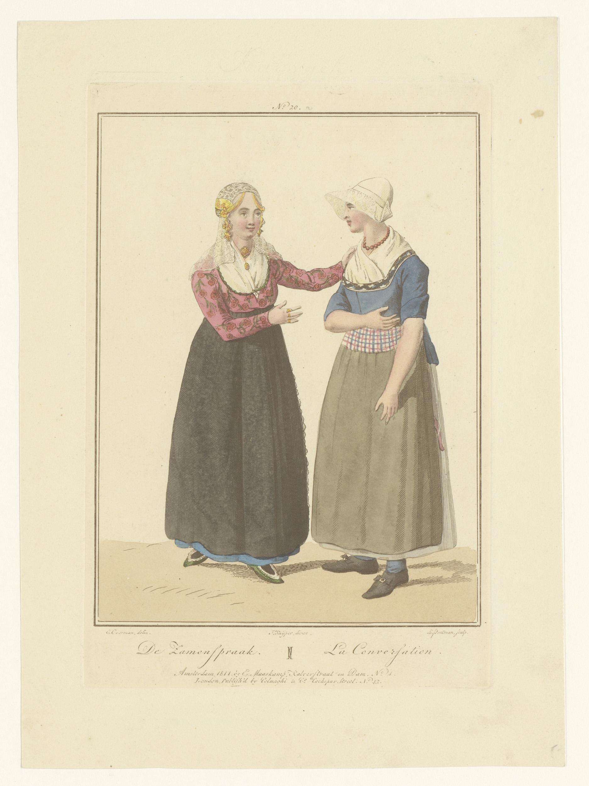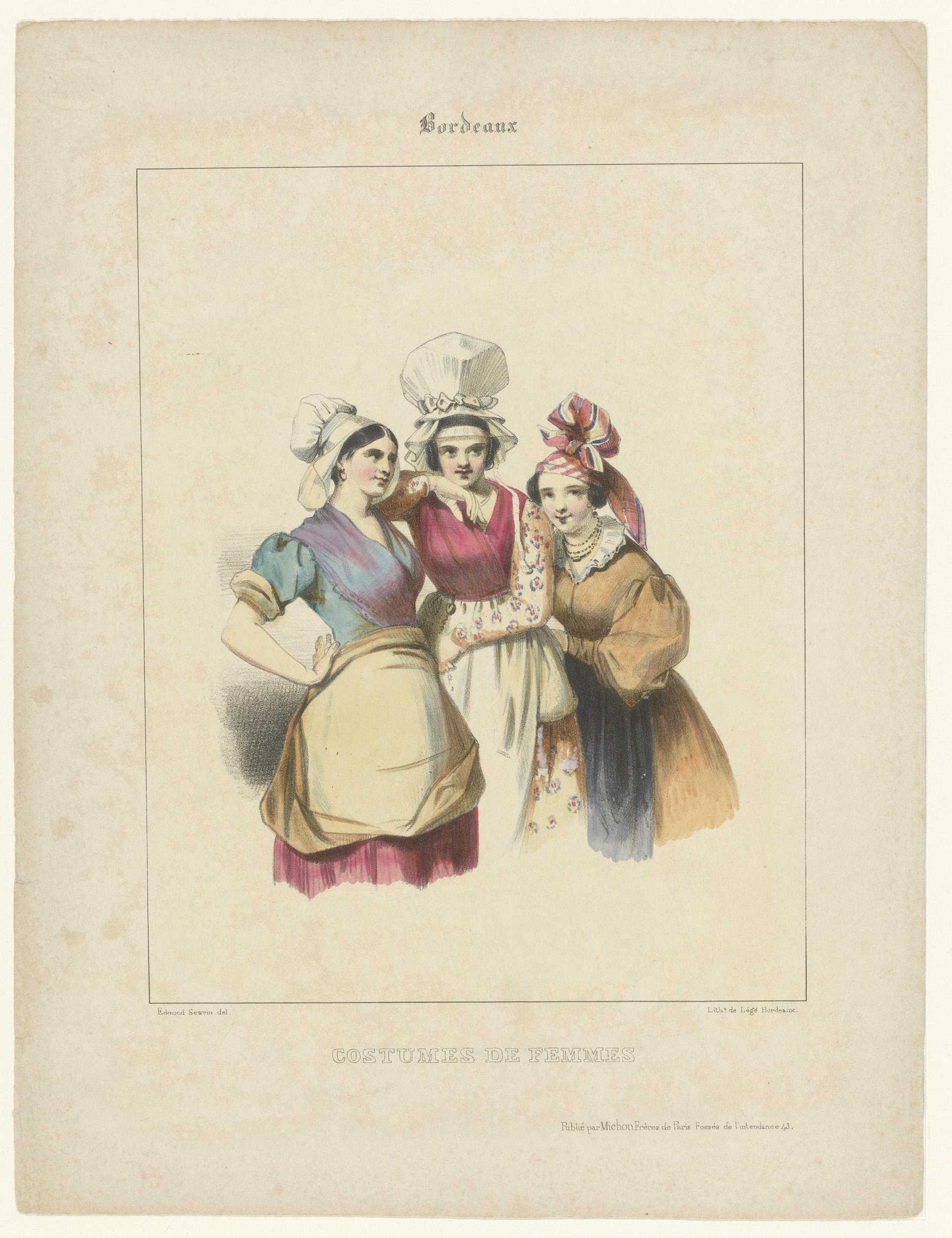 Drie vrouwen uit Bordeaux in traditionele kledij
