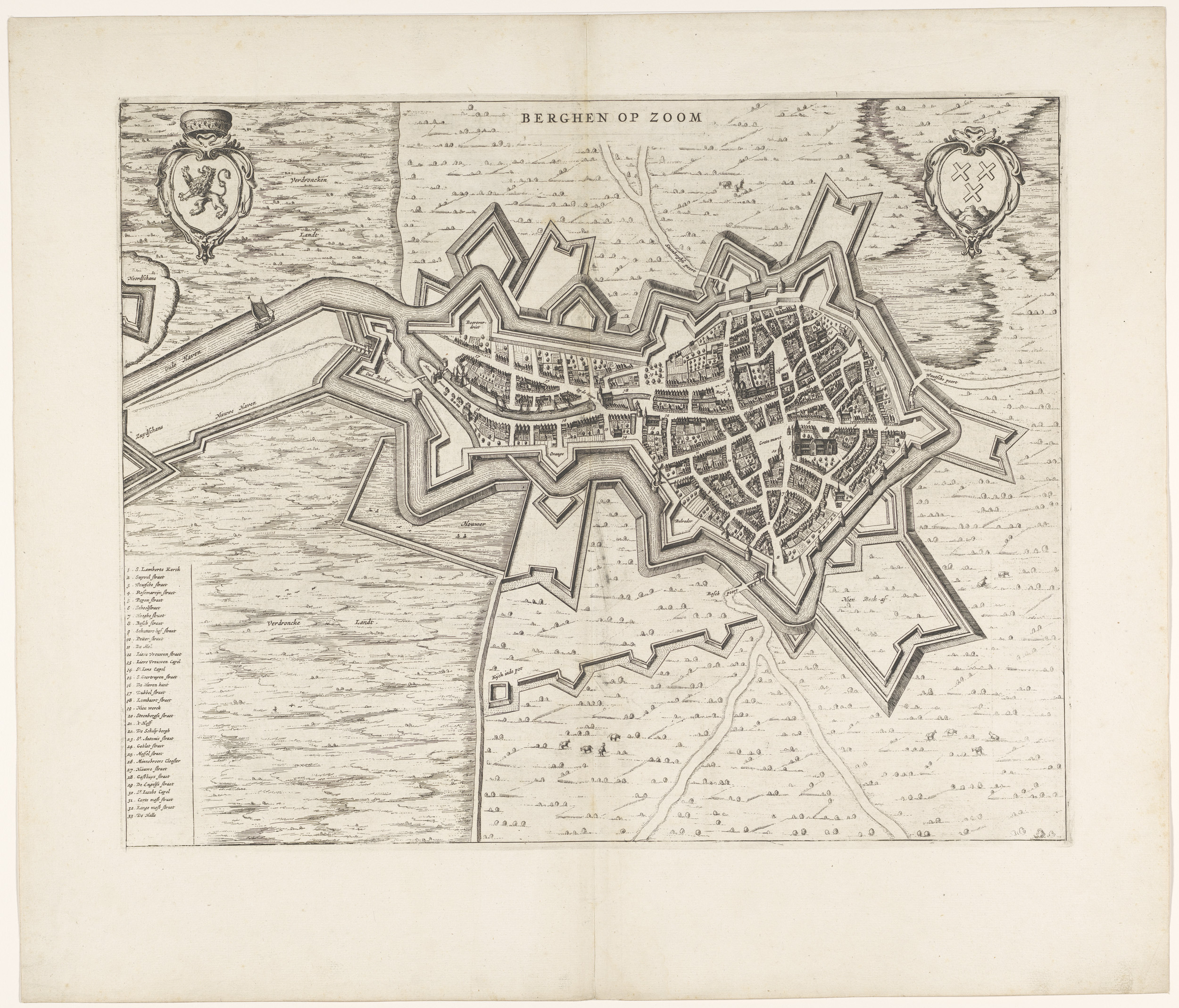 Kaart van het Beleg van Bergen op Zoom, 1622