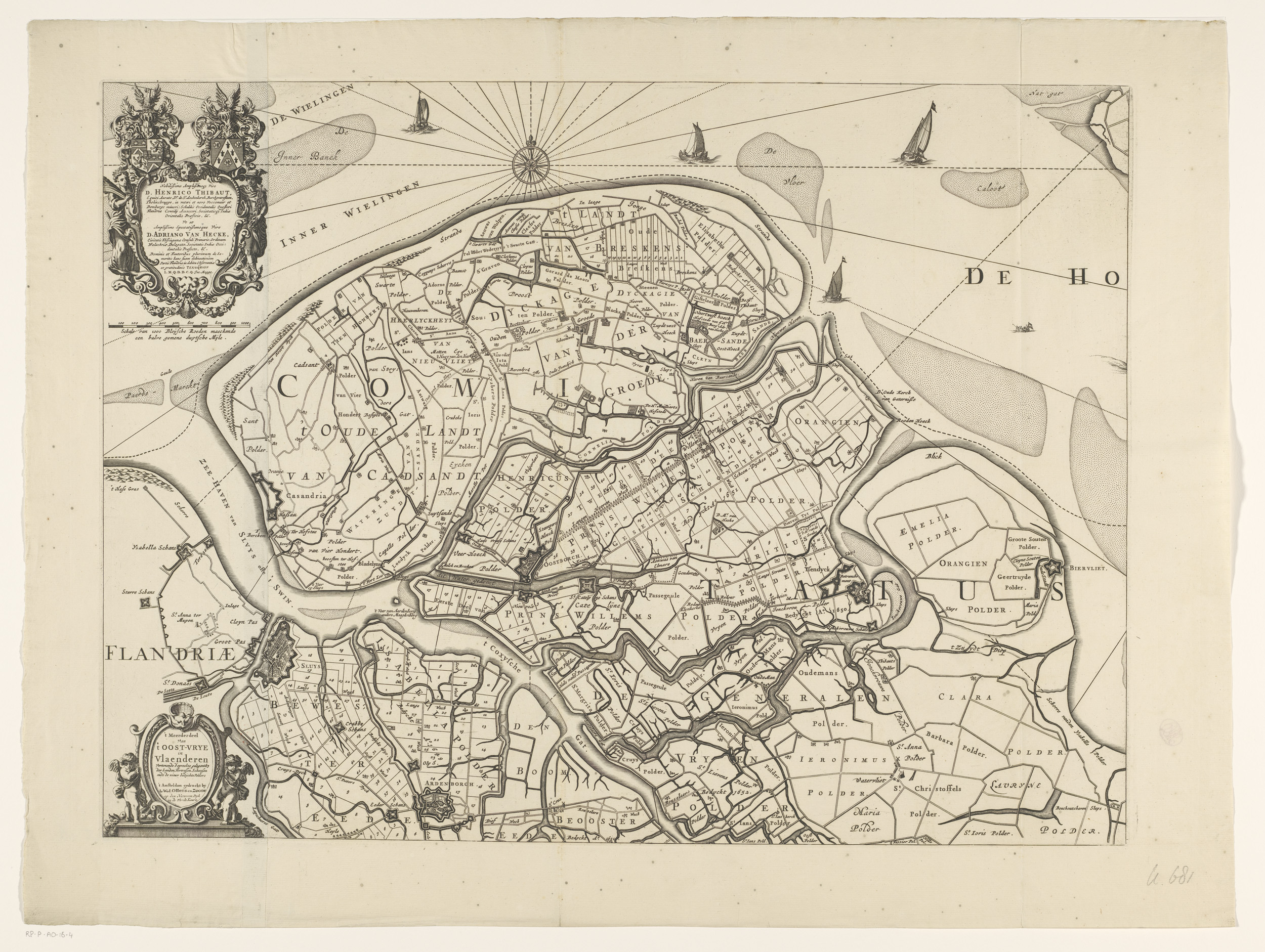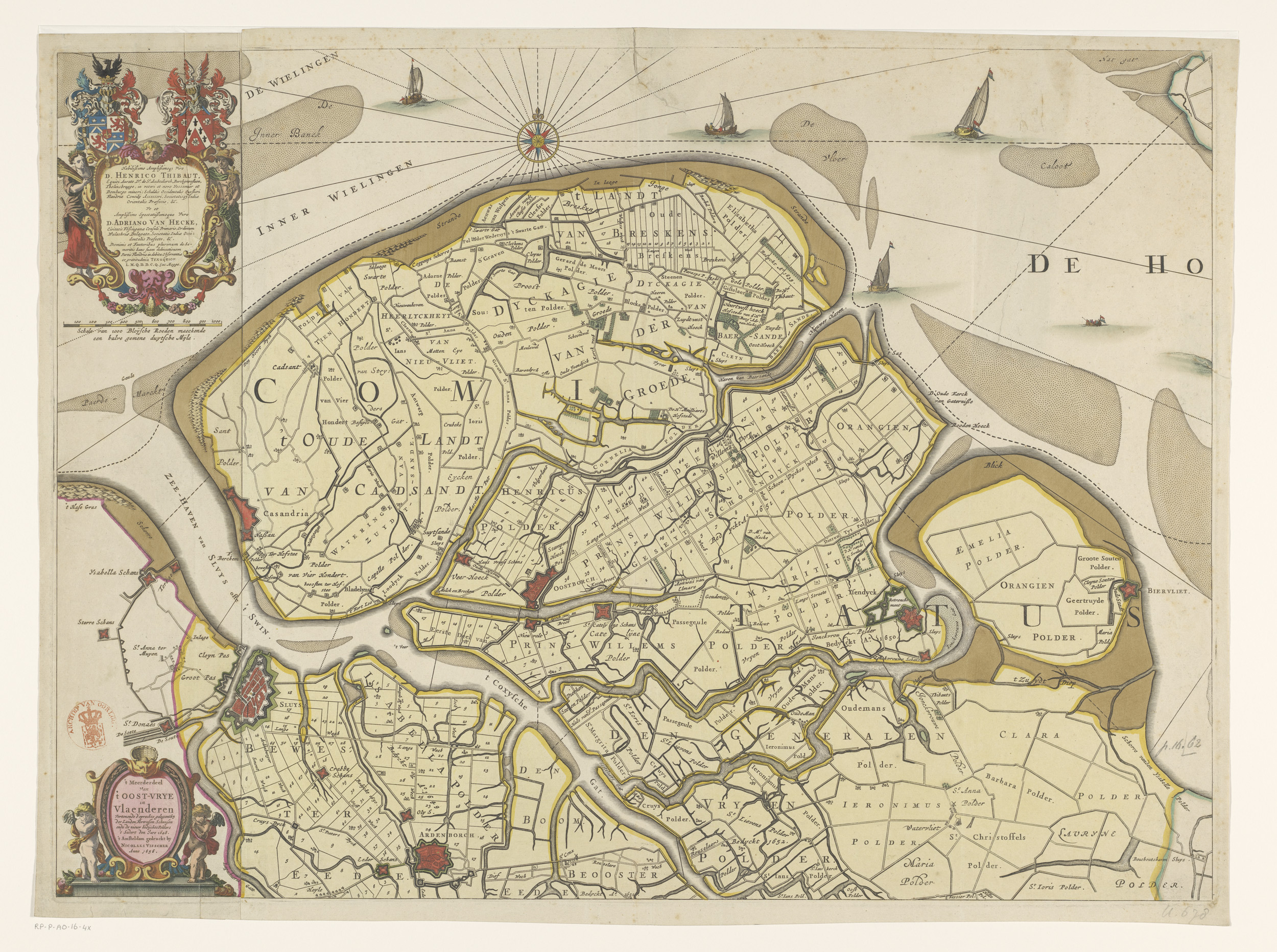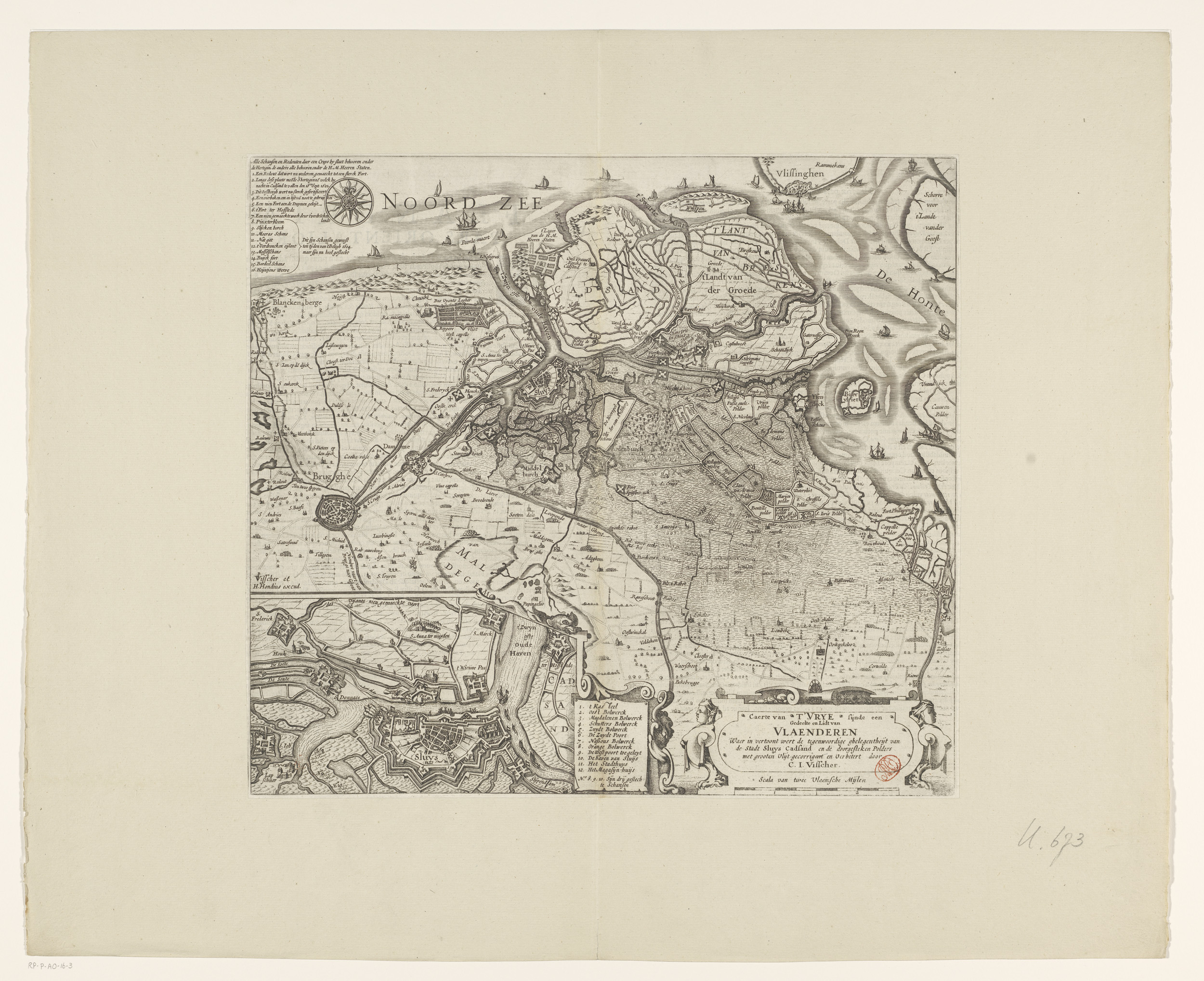 Kaart van Zeeuws-Vlaanderen met een inzet van Sluis ...