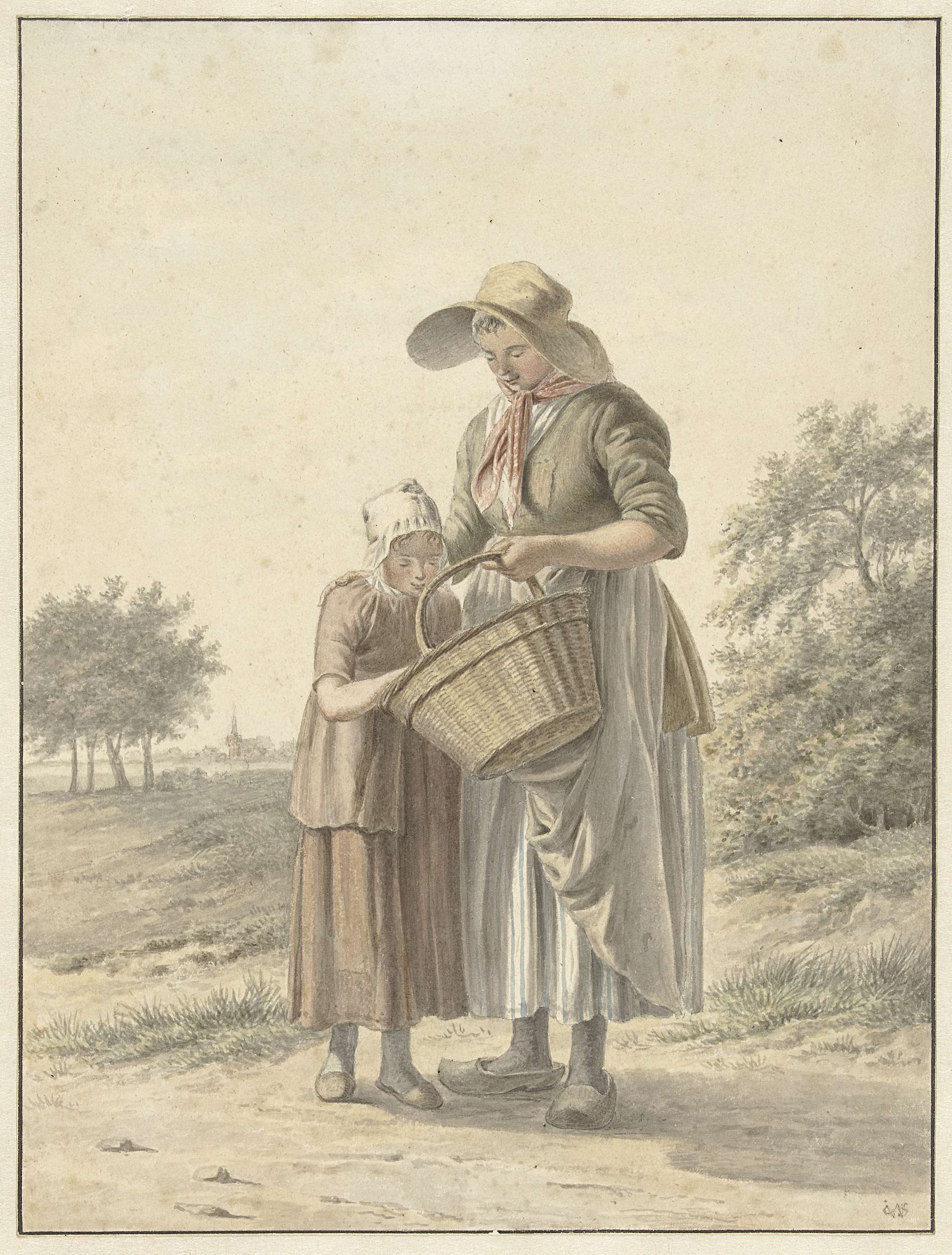 Vrouw en meisje op een landweg