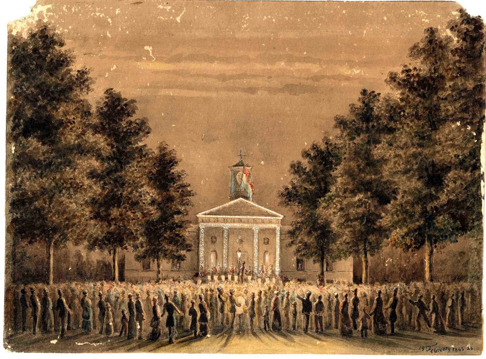 Ontsteken van de eerste gaslantaarn voor gemeentehuis